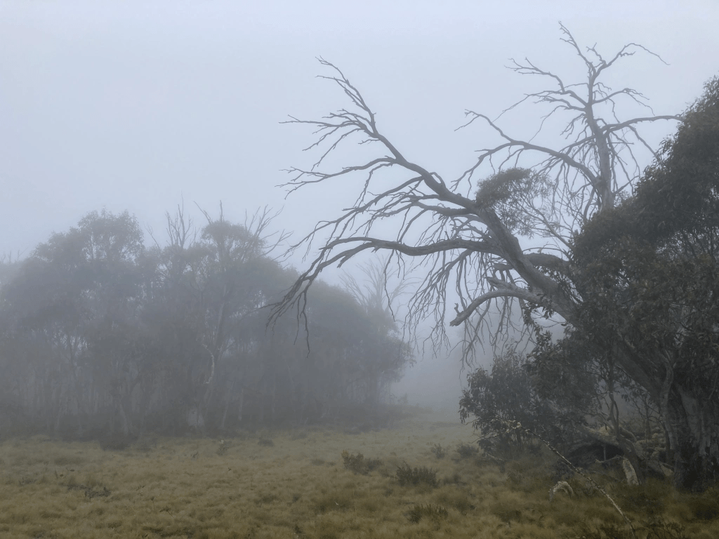 A little later, Tim and John from the Nordic ski club turned up and shared our fire. When I mentioned I was a member of the Canberra Bushwalking Club they said they know Linda, who is a fantastic leader in that group and has been instrumental in the campaign to have the brumbies culled. Small world. They’re heading over the ridge to the east tomorrow to check out some alpine rainforest that apparently exists there in the deep gully, sheltered from bushfire.