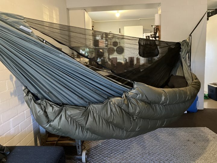 In a hammock, the best way of keeping your underside warm is a down quilt suspended underneath in such a way that it snugs up against you. I finally got around to making a new one; my third. The one I’ve been using for the last couple of years has given me a few nights on the edge of being too cold, and for the last six months I’ve had a box full of nice 850fp goose down sitting on...