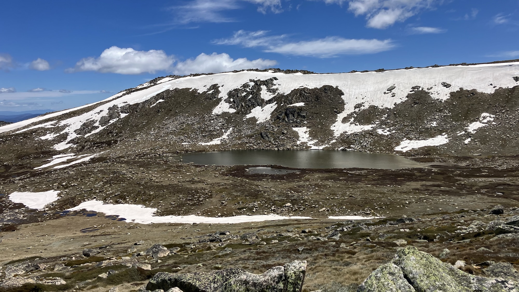 Once we got above lake Albinia the going got easier and the drifts became less frequent. It really is stunning country up here, and we couldn’t have asked for better weather.