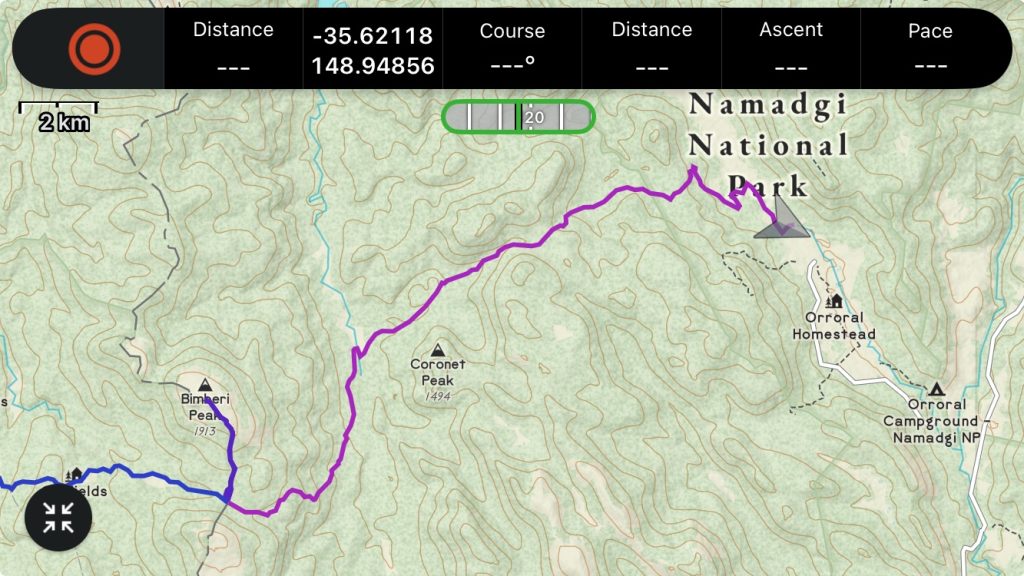 And then descend to the Orroral Valley. We’ll drop a thousand meters today. Somewhere around Cotter Gap we cross the 200km mark.