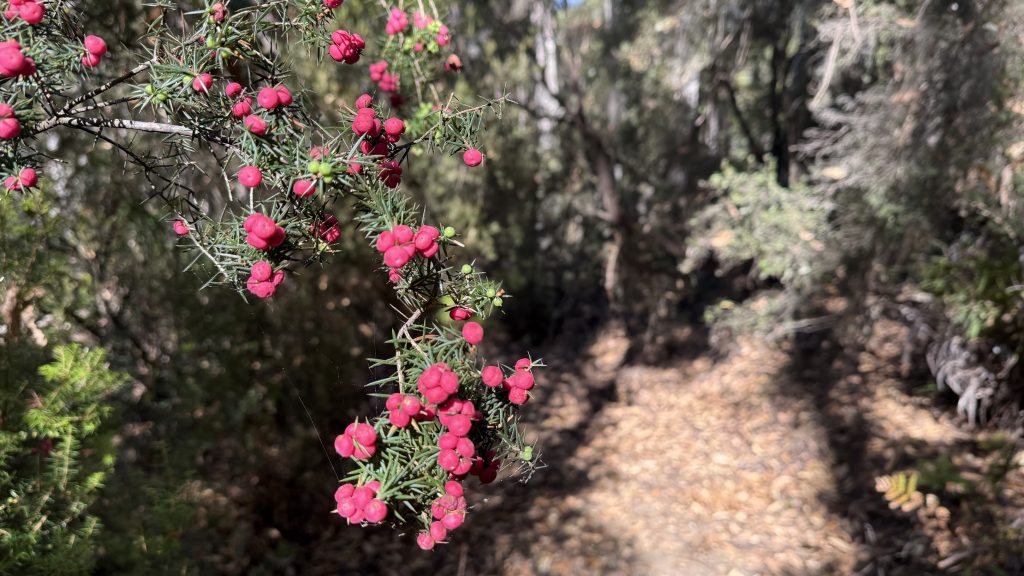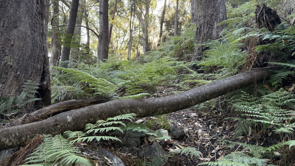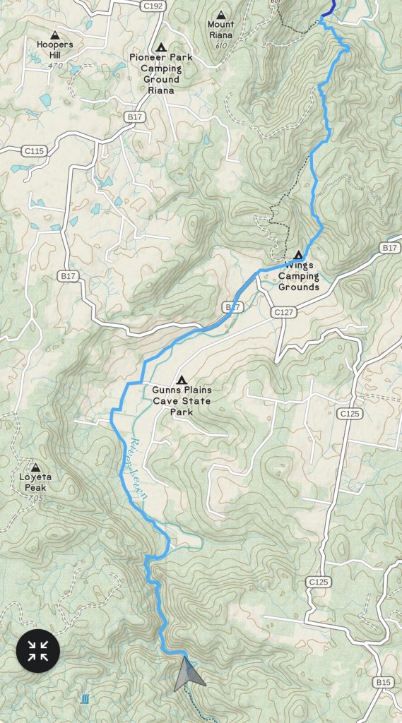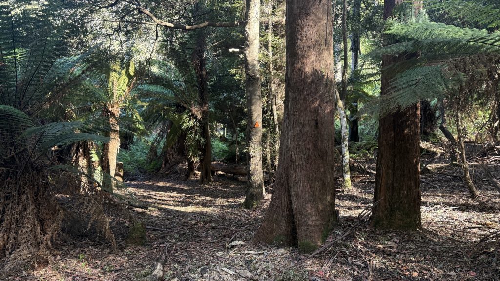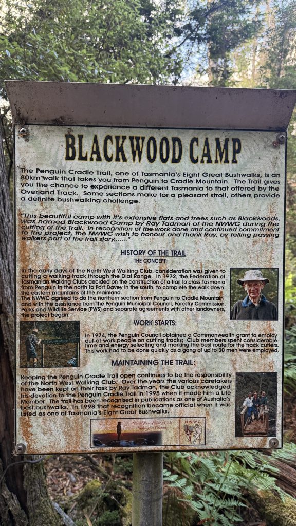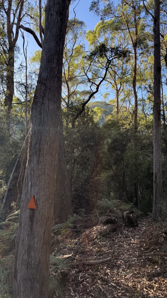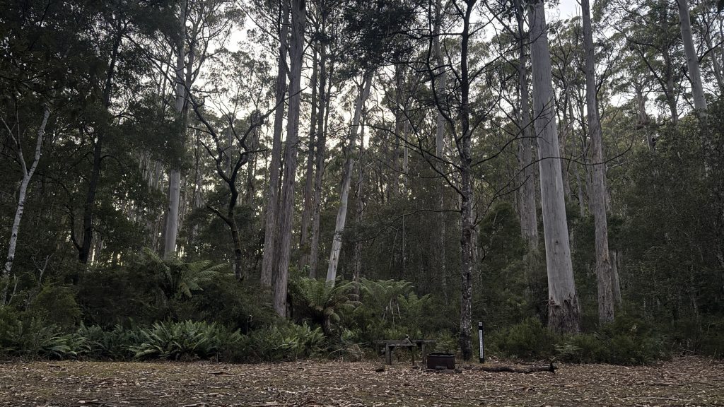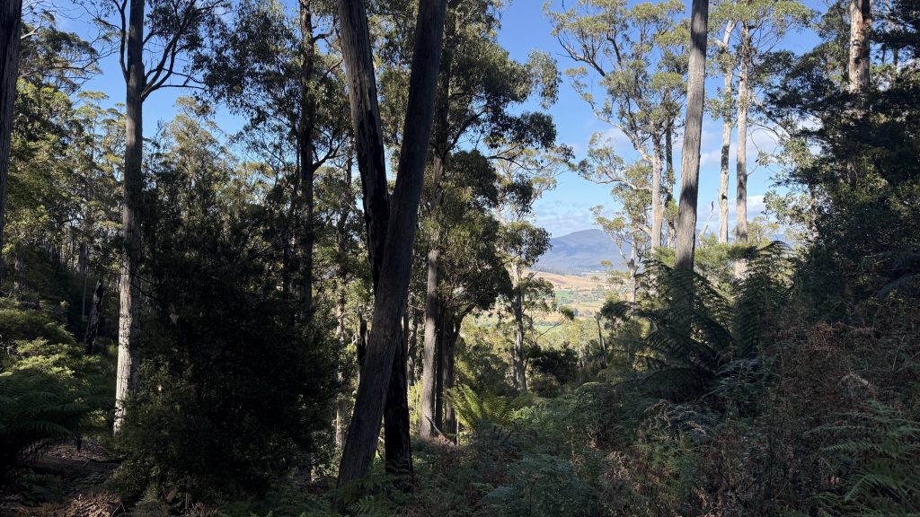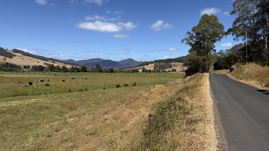 The morning is still and cold. Not Canberra cold, but definitely not February weather either. maybe six or seven degrees. I’ve got another 25km to do today to be where I want: somewhere in the Leven canyon. Checking Chapman, he reckons it’s eleven hours of walking. I guess we’ll see.