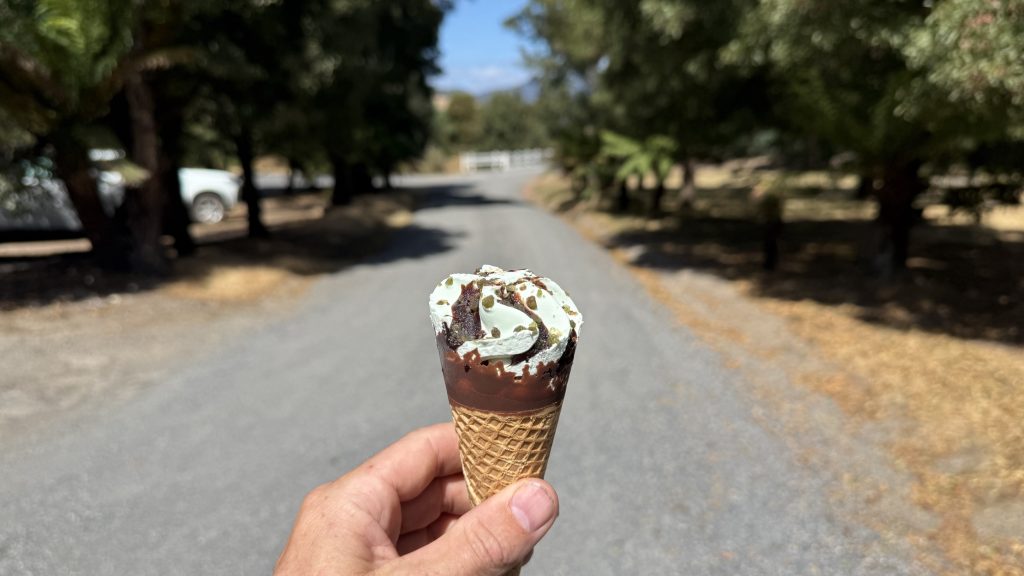 It’s a rare delight to stop in the middle of a hike for a good meal. If you’re ever in the area it seems like a great spot, and I wish I’d had time to see the animal attractions. I did however fulfil a long-running ambition: a cornetto in the middle of a day of solid hiking.
