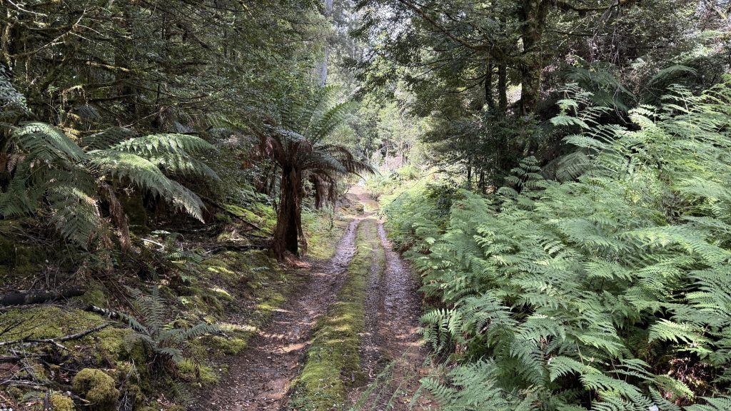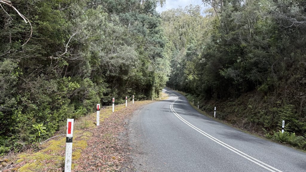 Then it’s 1.5km of bitumen on the Gordon River Road. I cross the Florentine for the last time, though I can only hear it rushing through the culvert far below.