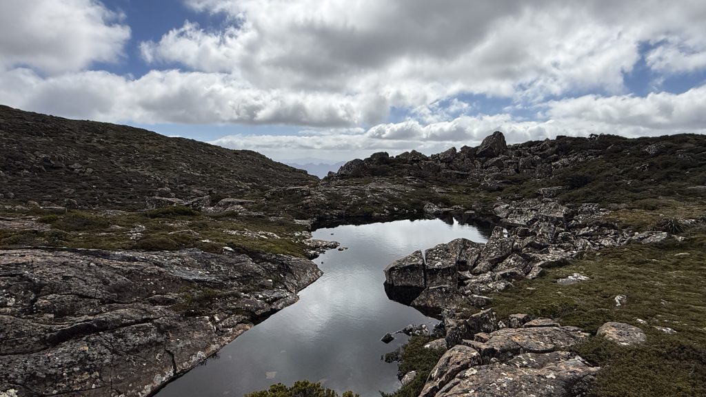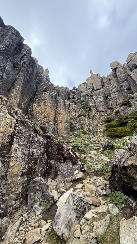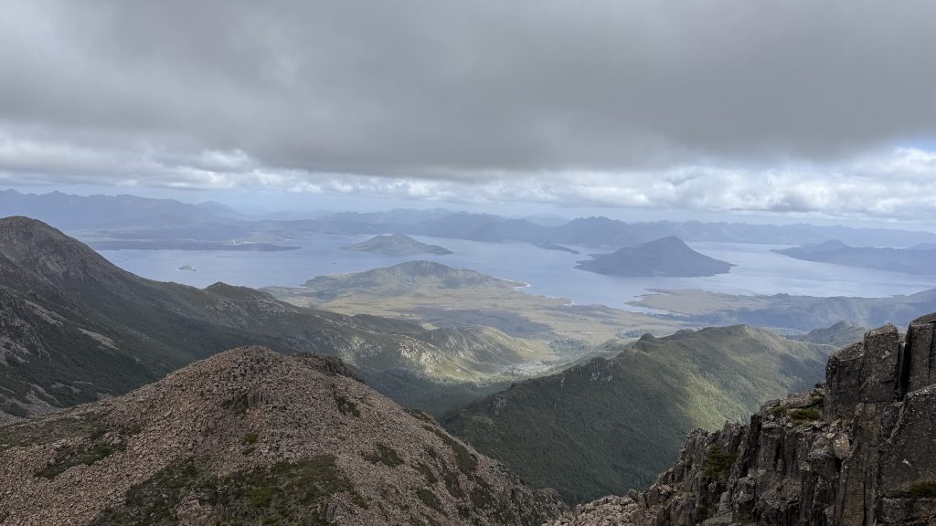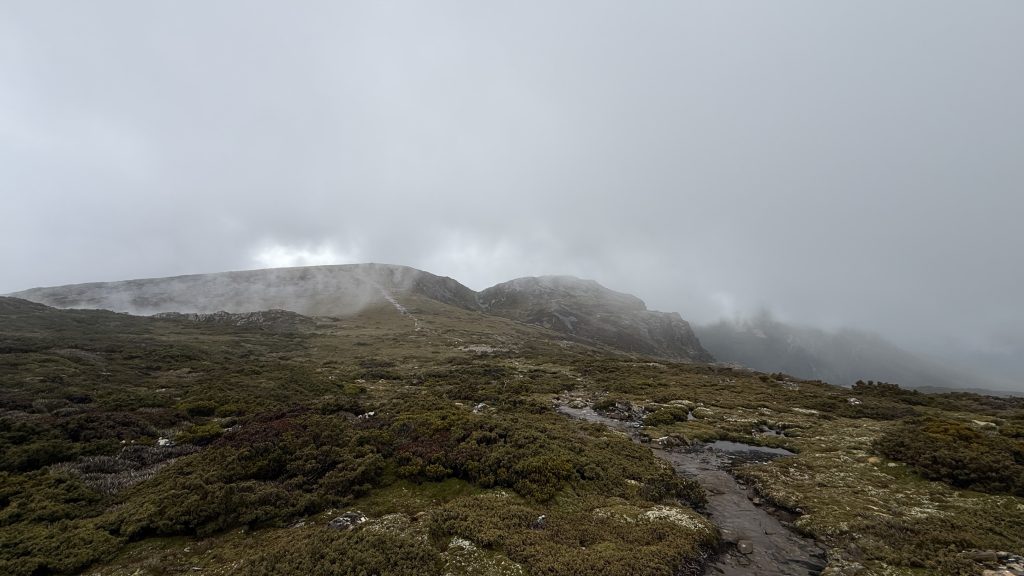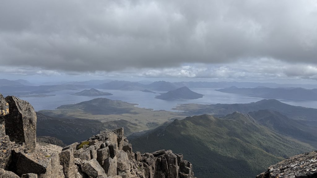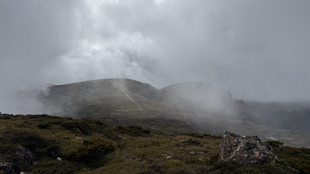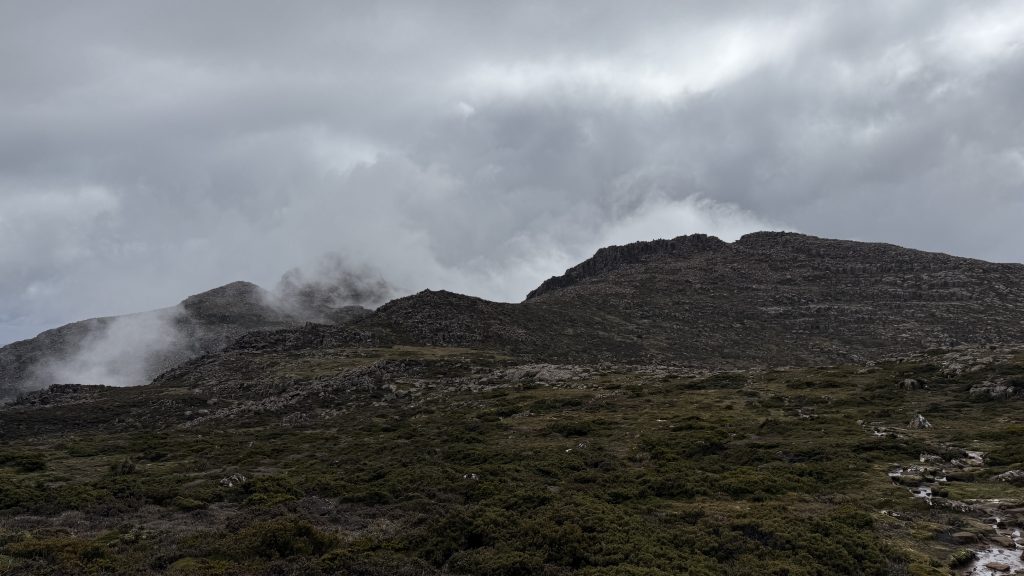 There’s phone reception at the junction to Mount Anne. Two bars of 5G! I sit on a cushion made of my rain pants, leaning against a rock, and spend maybe 45 minutes uploading the last five days worth of blog posts.