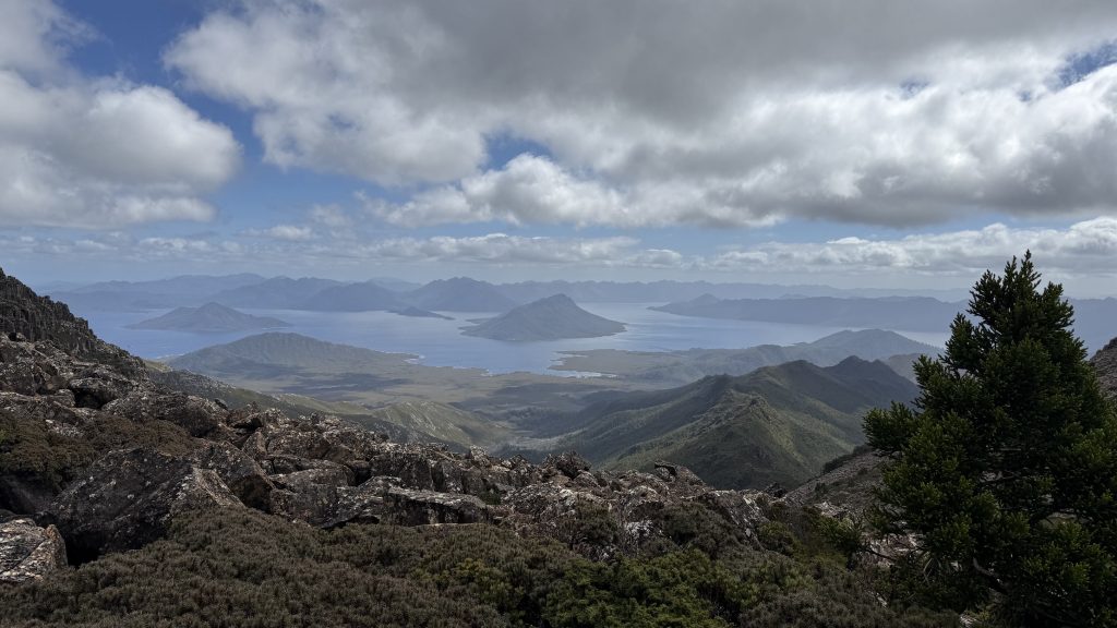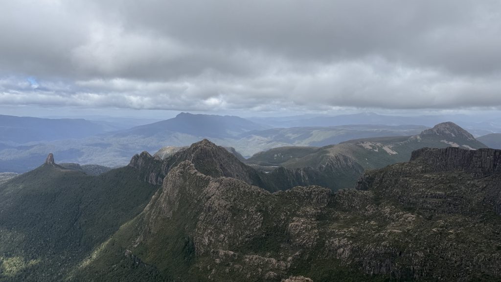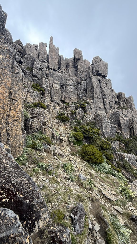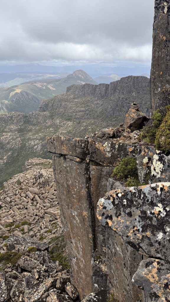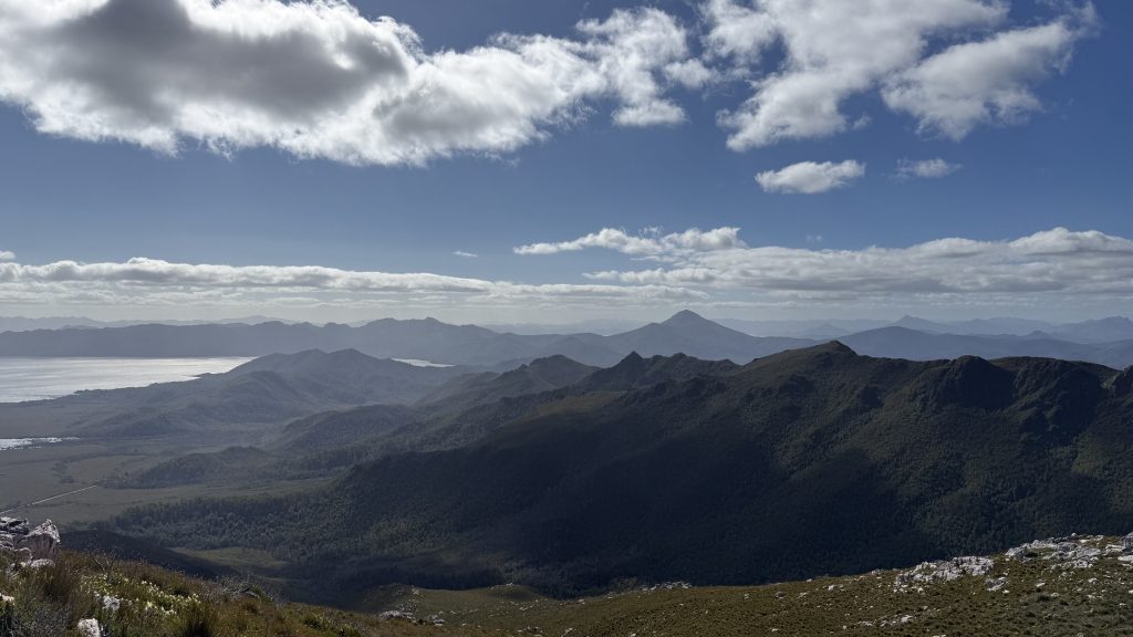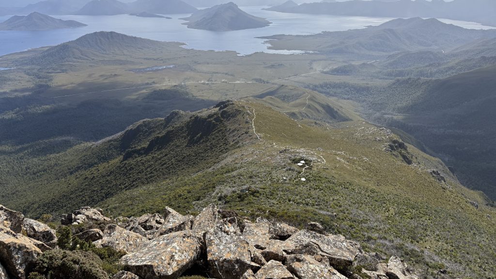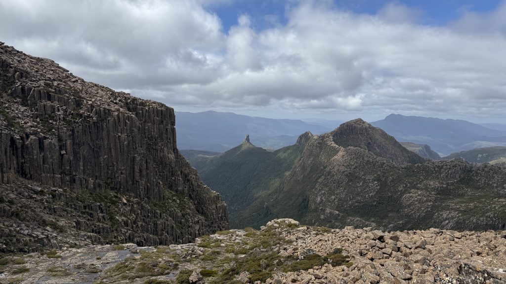 There’s phone reception at the junction to Mount Anne. Two bars of 5G! I sit on a cushion made of my rain pants, leaning against a rock, and spend maybe 45 minutes uploading the last five days worth of blog posts.