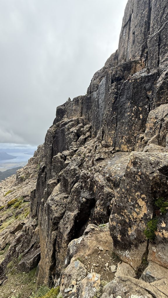 If Ossa is crowned by one terrifyingly exposed scramble, then Anne is strung with a dozen of them like a necklace. I make it to the top, aware that getting down is often harder, and lamenting my decision to only bring two pairs of underpants on this expedition.