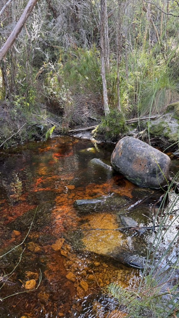I finally reach Forest Camp after 23 long kilometres. But I forgot to check the water situation, and after dropping my pack have to walk another 200m down to the creek and back again. It may not sound like much, but at the end of a long day it’s a lot.