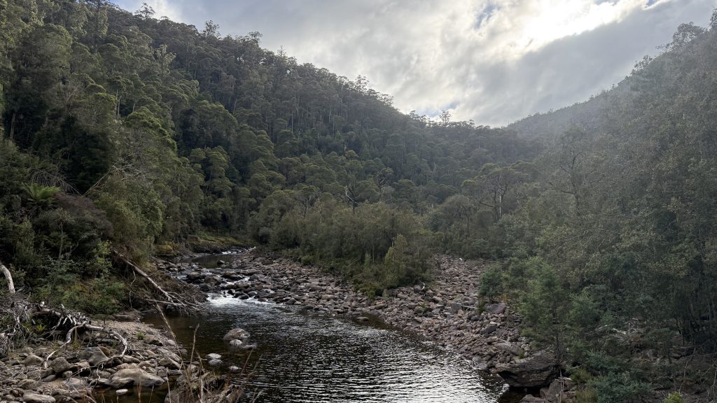 A beautiful warm night with the sound of the river rushing by. Today will be shorter, whether I decide to stop at the bottom of Brookes track or climb the 600m up it to Paddy’s lake.