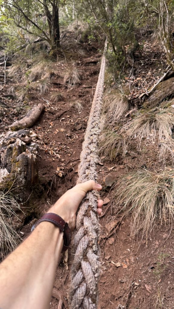 Eventually the track leaves the river and begins a long, winding 500vm climb towards a rocky cliff top and lookout. I take it slow and careful because I’m on my own and an injury on day three would be ridiculous. I average 2km/hr through here.