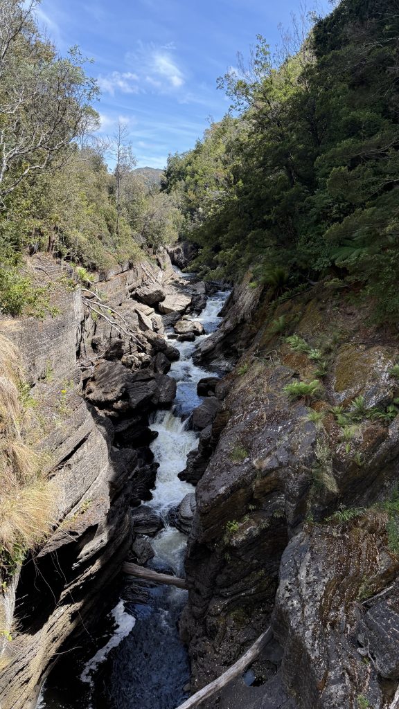 The track along the Leven really does demand one’s attention, with the winding and rocks and roots and fallen trees and narrow spots that drop away, and the sections where the track disappears beneath a land slip, and the broken shale slides away beneath your feet.