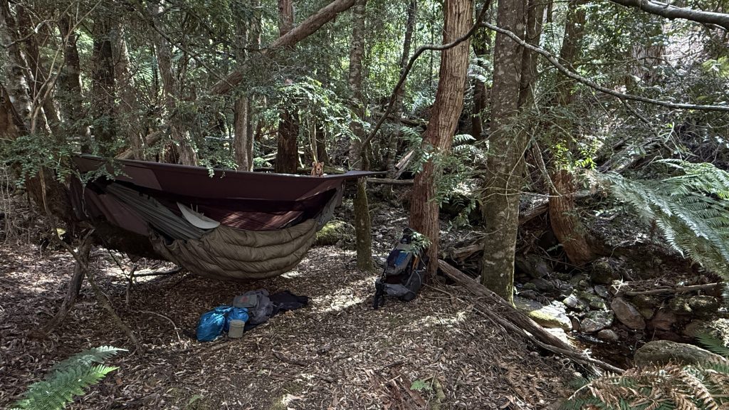 I’m not at all confident of finding a hammockable spot up high. I decide to camp at the bottom of the climb, next to a magical little creek, under the shade of myrtle beech trees. They remind me of NZ. And yet not. The friendliness of the people here is the same. It’s like a piece of Australia that broke away and tried to reach NZ but didn’t quite make it.
