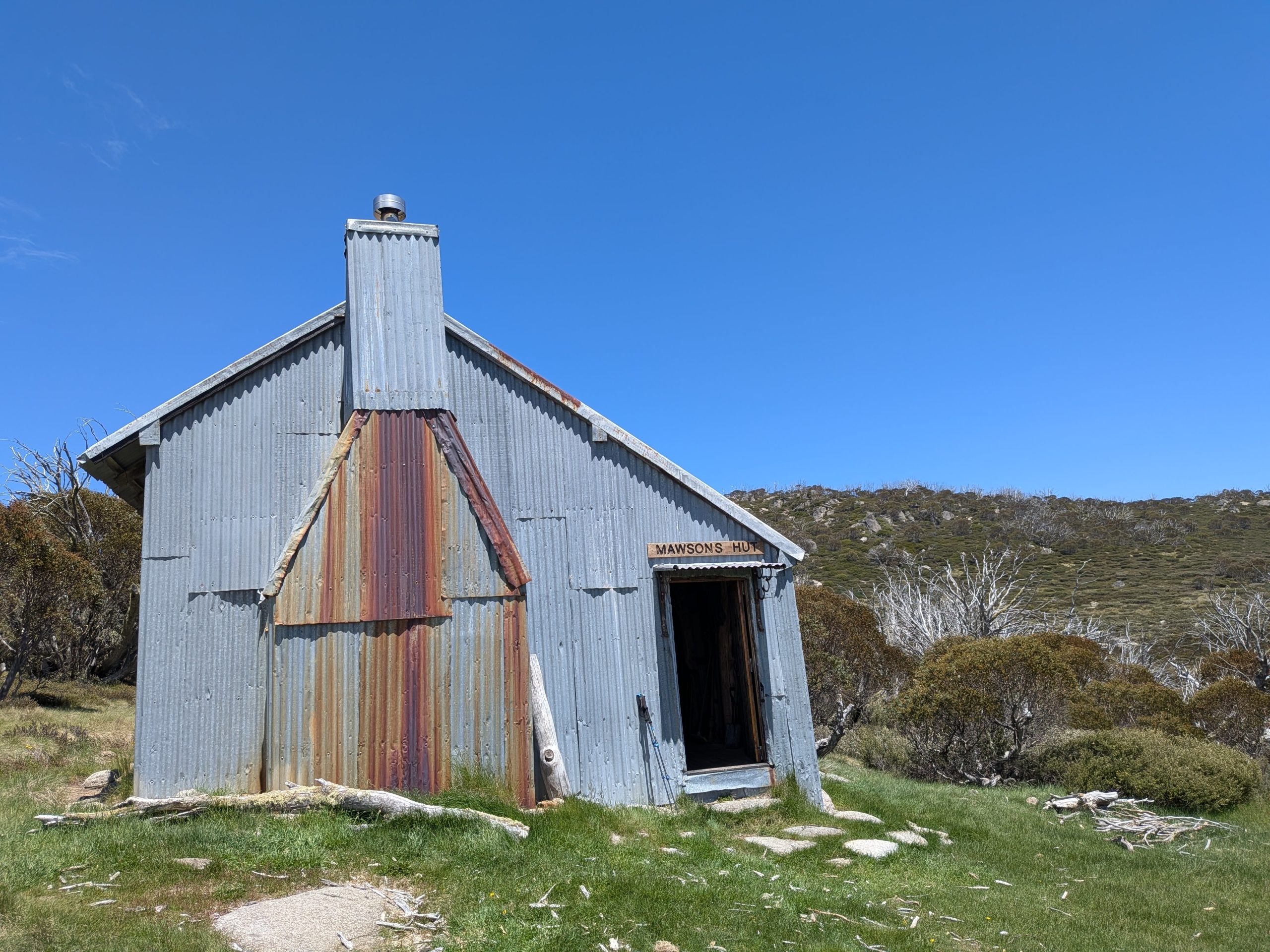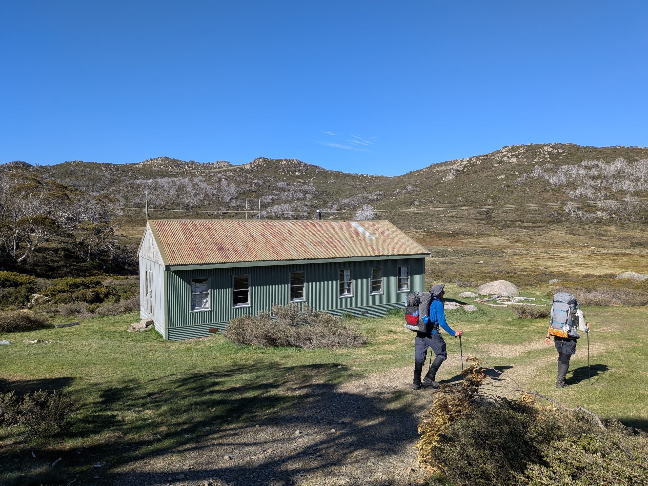 A beautiful sunrise to start the day, with my customary coffee from the hammock. As leader, I can choose what time we start walking each day and 8am has been feeling very comfortable. We started with an easy walk on dirt road up to Schlink pass, and then to the hut known colloquially as the Schlink Hilton because of its large size and many beds.