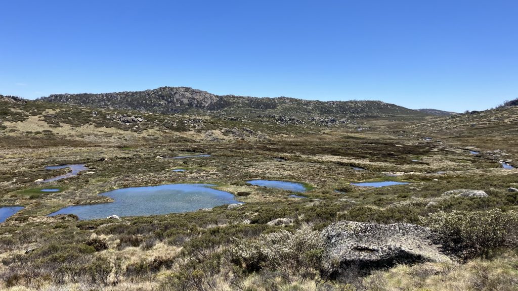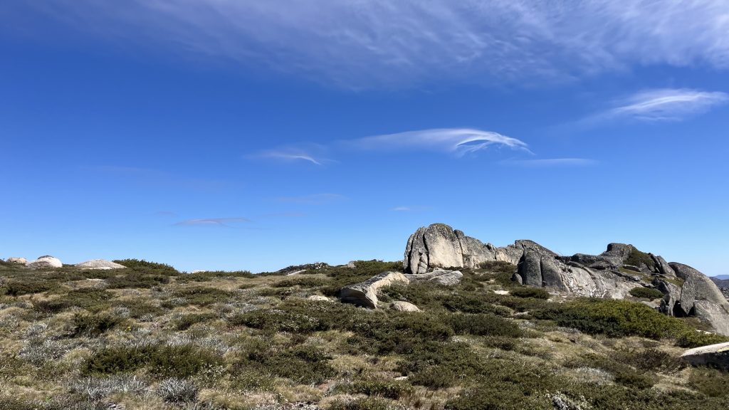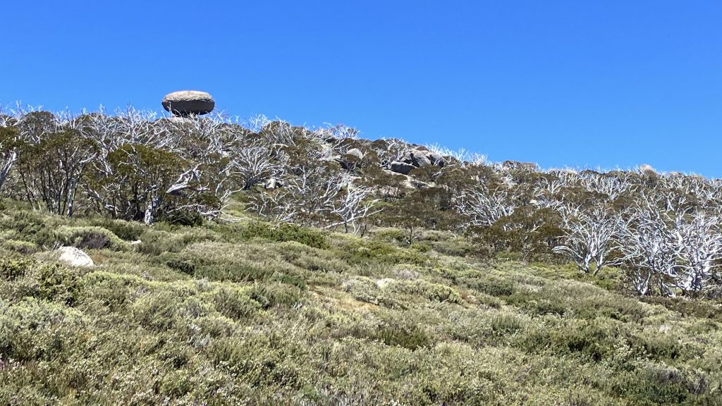 From Schlink hut we left the track and cut up towards Kerries ridge to meet the route we would have taken if we’d done Mt Gungartan. This region is vegetated largely by a knee high woody scrub that needs to be navigated between to avoid excessive energy expenditure.