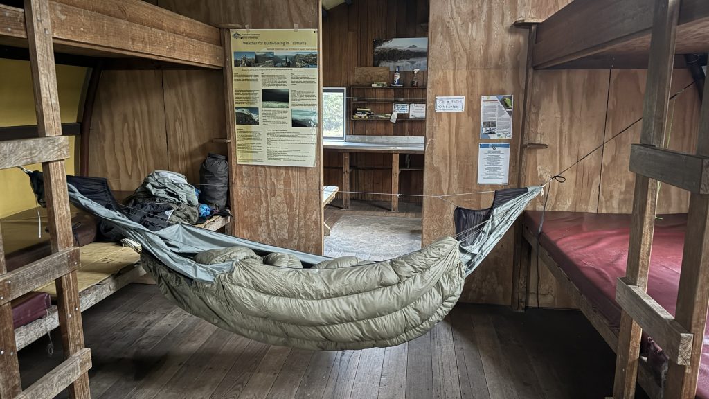 With the hut to myself, I’m able to string the hammock up inside and have a pleasant night out of the rain. I’m not expecting this to continue; with flights grounded for the rain , any hikers coming in today will have to sit out the weather. My luck with having shelters to myself cannot last forever.