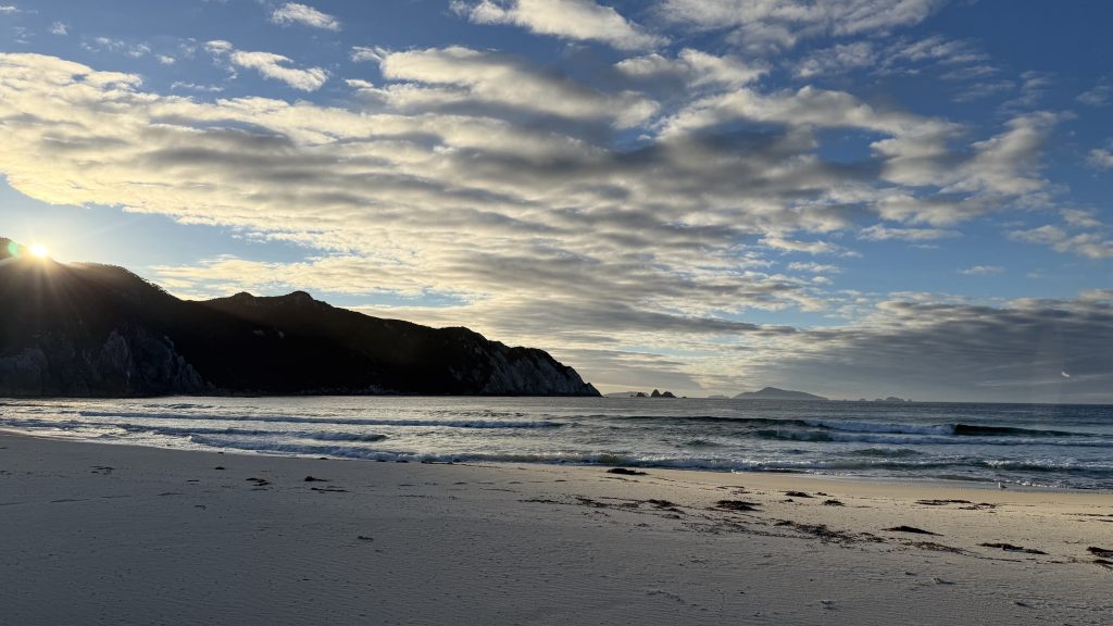 I’m aware that I’ve still got quite a walk back to camp, so I wolf down some lunch and leg it back down to the beach. The wind is picking up, and I’m hoping that’s the worst of what’s coming for my walk back.