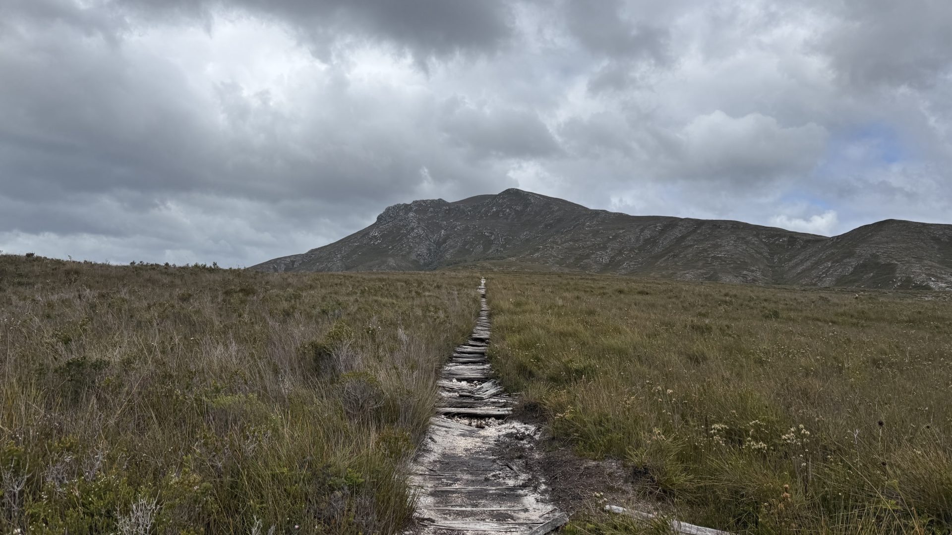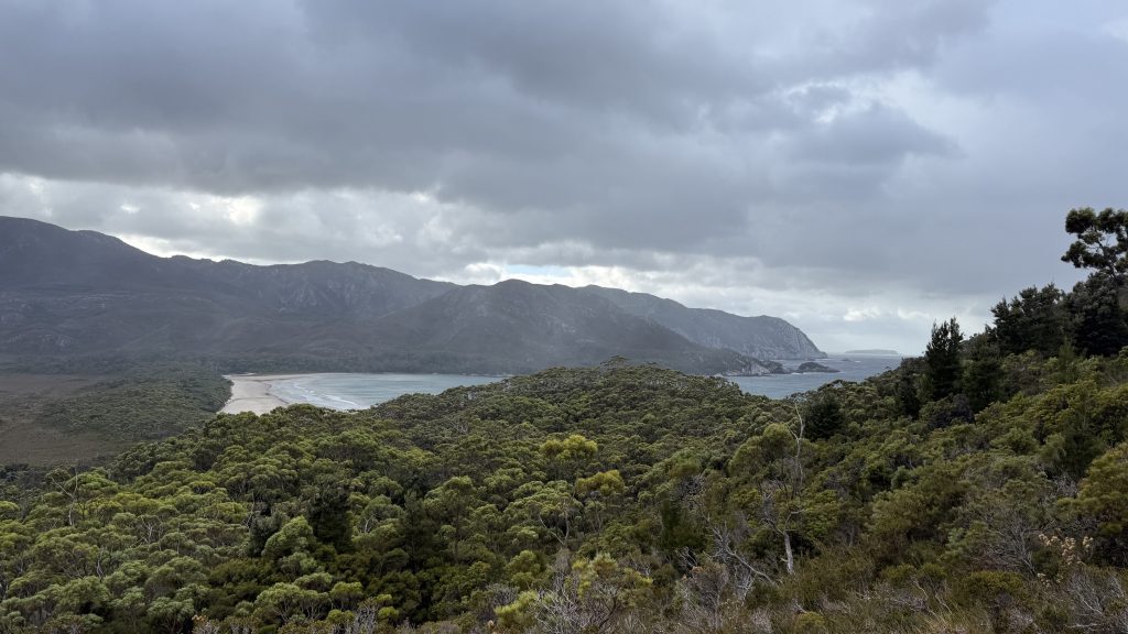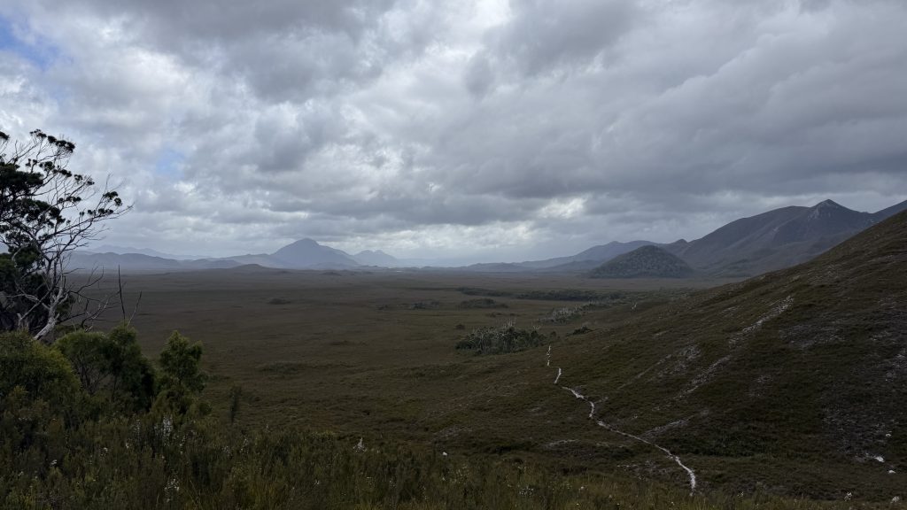 The Ironbound Range rises in the near distance. At close to a thousand metres high, they are largely regarded as the hardest part of walking the South Coast Track. They certainly look formidable.