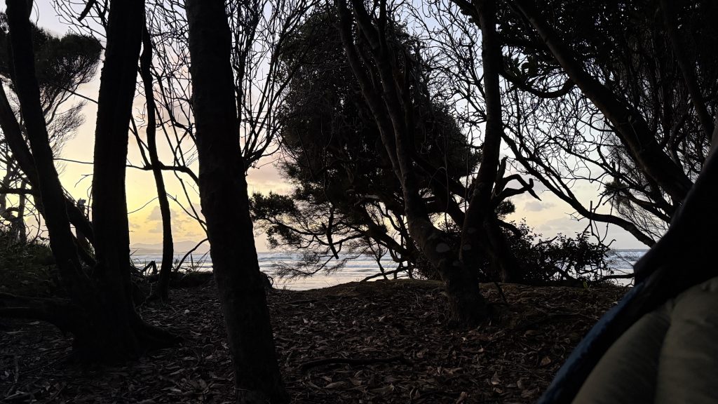 I drop my pack at the campsite and go for a walk down the beach. It’s longer than it looks, maybe 2km long. You can walk out to Louisa Island at low tide. I can’t be arsed. Also I have no idea if the tide is coming in or going out, and that seems like important information.