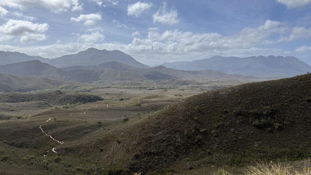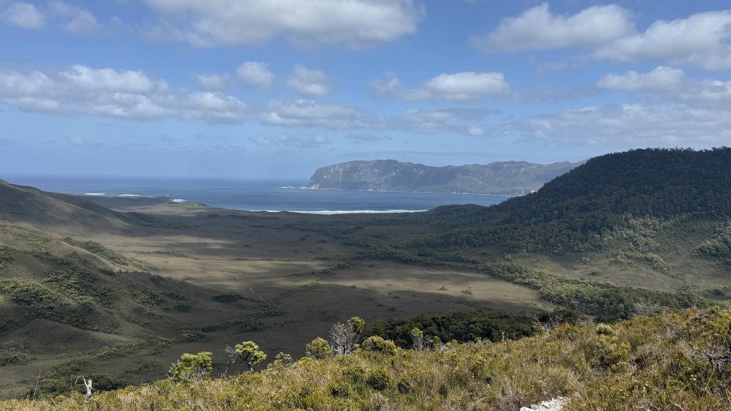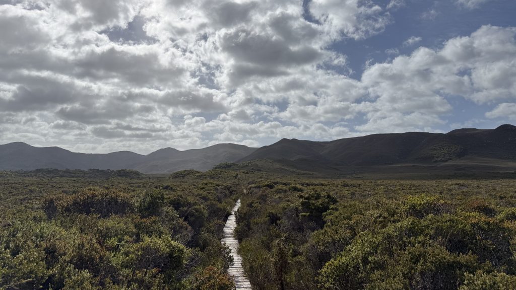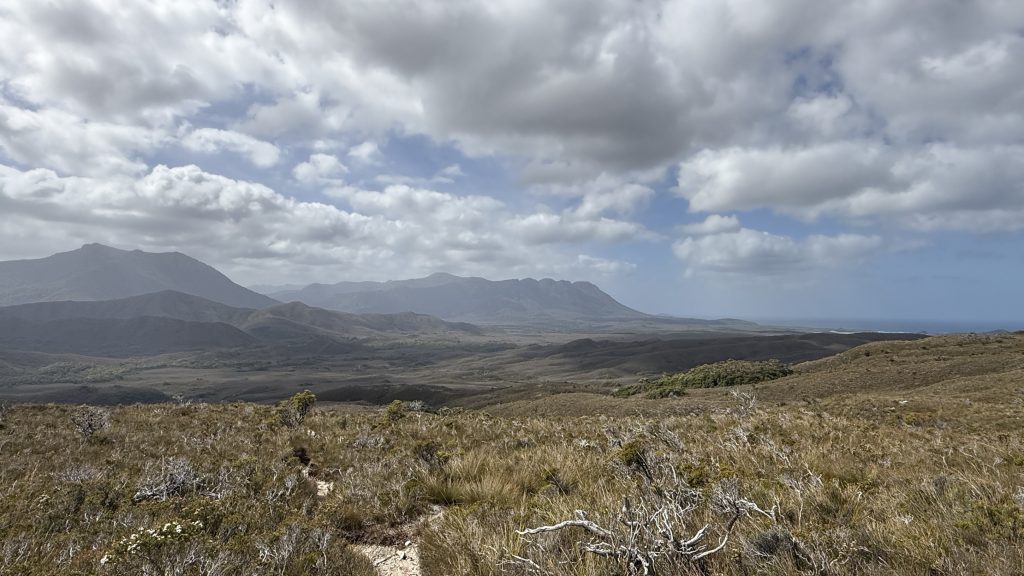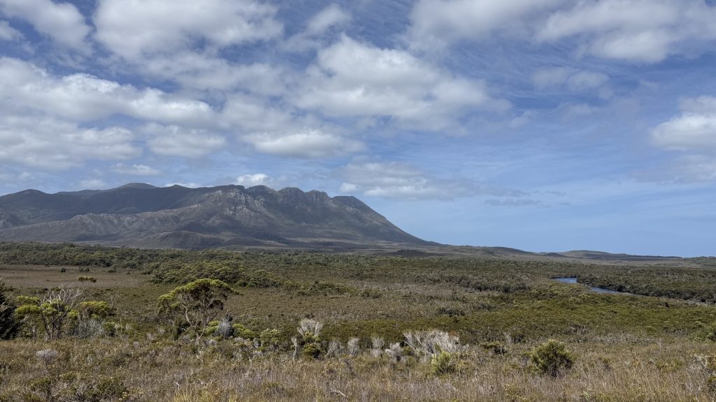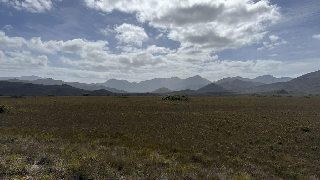 Compared to the Port Davey and South West, the SCT so far is a beautifully open and easy track. Some of it is falling into disrepair and scrubbing over, but on the whole it’s comfortable. I take the turn for Louisa Bay, winding over open grassland for a few kilometres with the Ironbounds towering menacingly to the east.