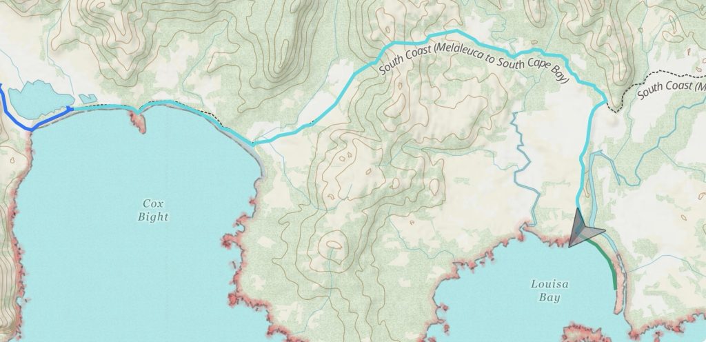 At Louisa Creek campground I decide I’ll do a water carry to Louisa Bay. The water there is described as coming from a drip off the rockface, and sounds tedious to collect. I sit and have lunch while I wait for it to filter.