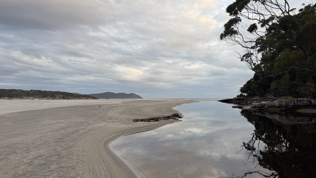 I walk out to where South Cape Rivulet meets the ocean and cross without taking my boots off. It’s taken me about four hours from Granite Beach. Not bad! Guess those trail legs are working pretty good.