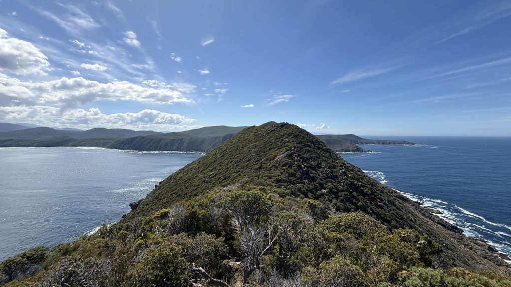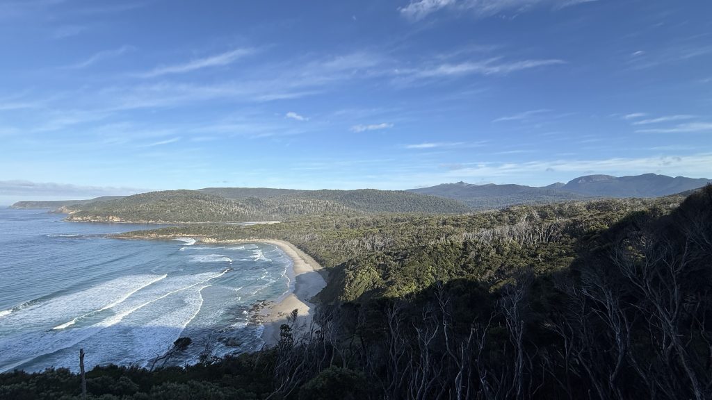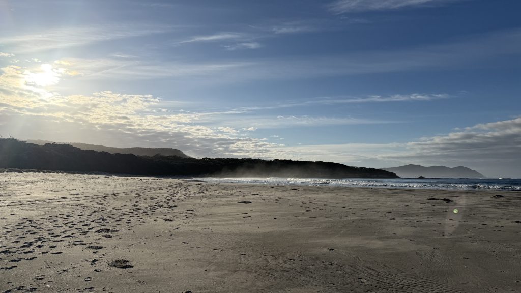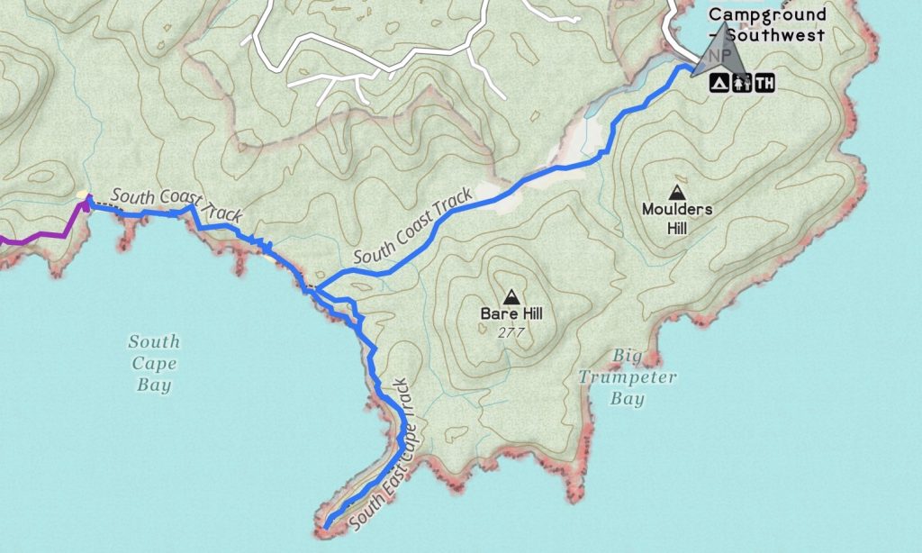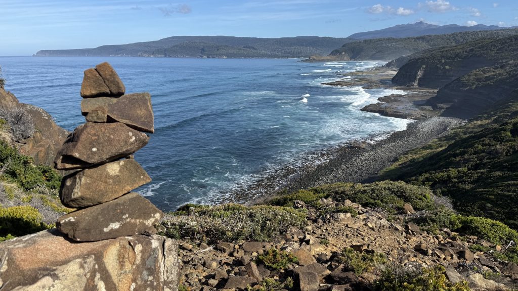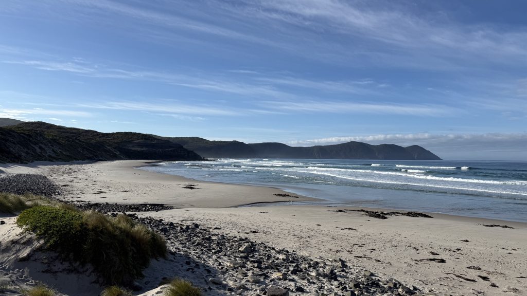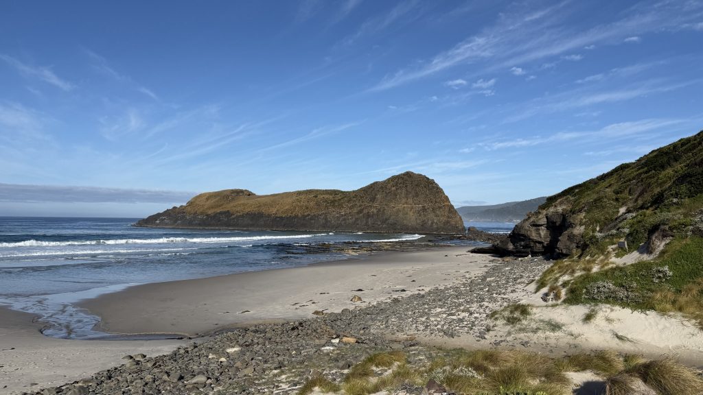 The track leaves the beach to head up and over to Cockle Creek, but there’s one last thing I want to do first. The South East Cape is the southernmost point of Tasmania. There’s apparently a low tide route part of the way out there. I’ll give it a go.