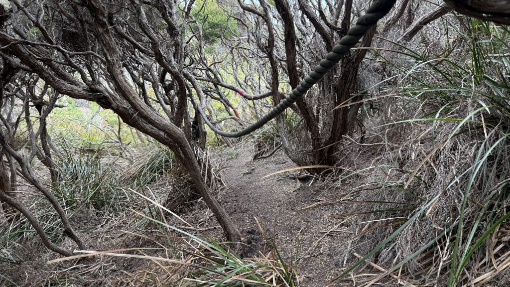 I notice on the way back that my hip pocket has been pulled open by the scrub. My NZ possum and merino gloves are gone, and one buff. I backtrack a little bit and thankfully find the gloves. The buff I can more easily replace.