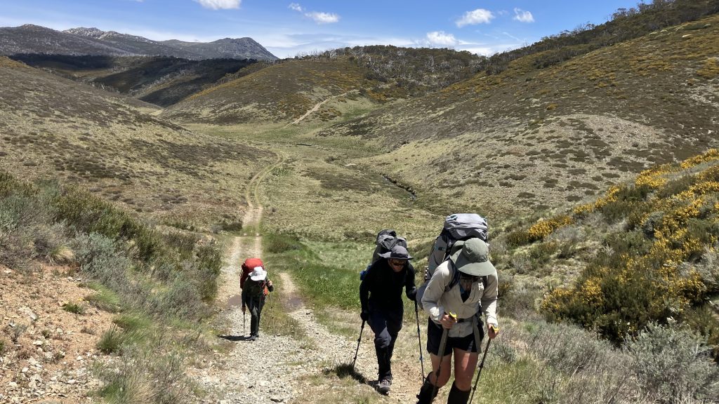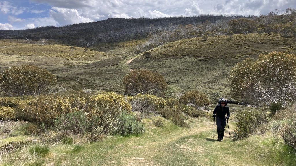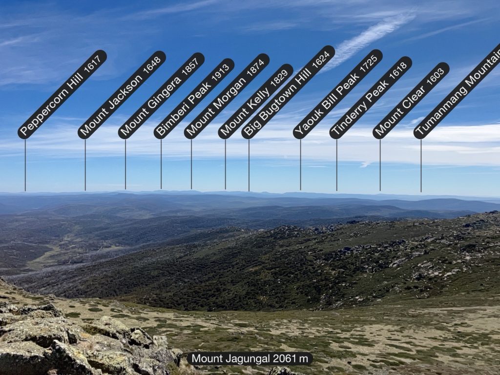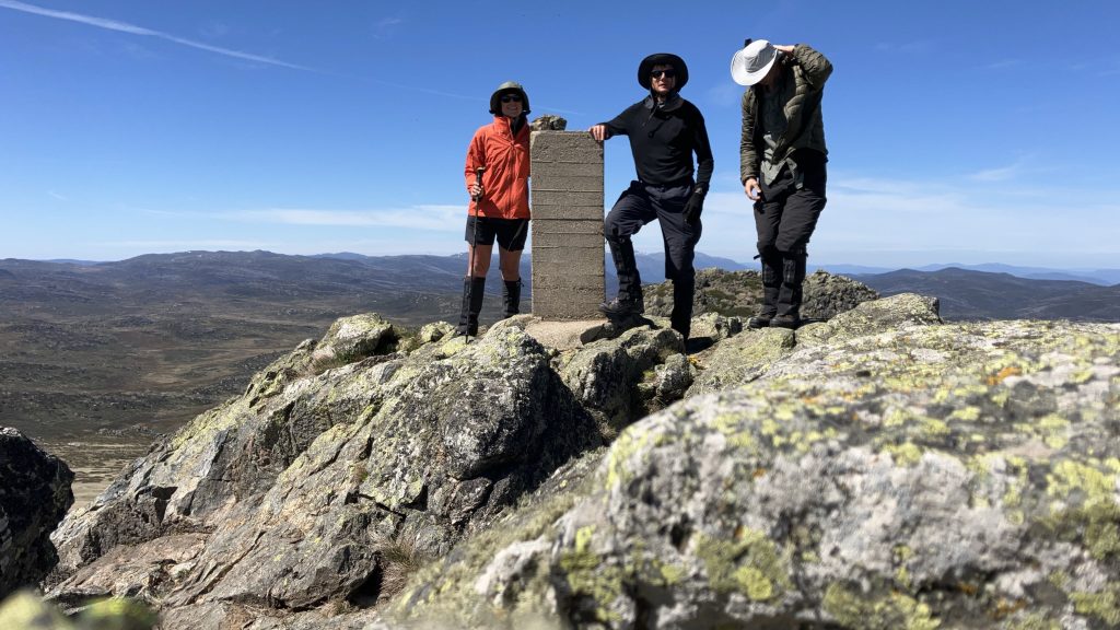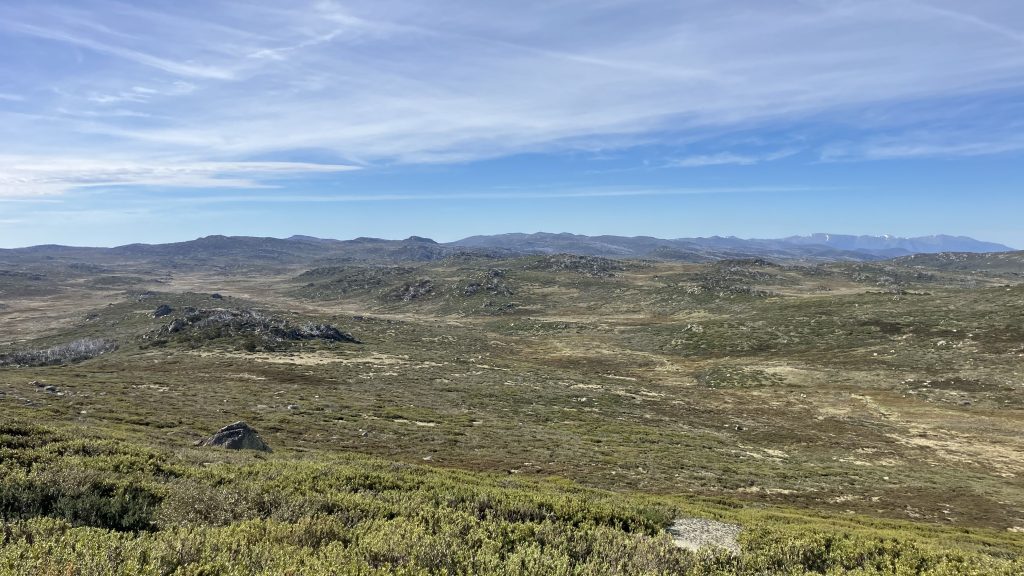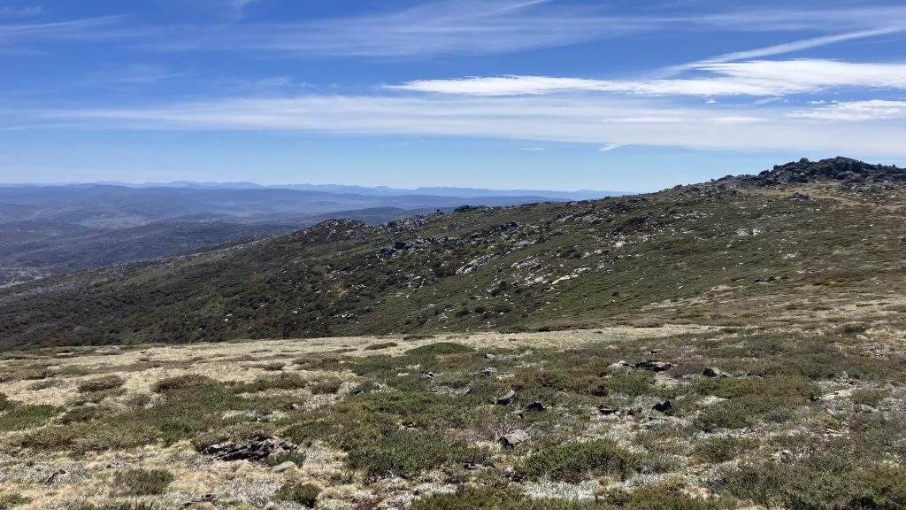 We walked up the ridge a ways, then Robyn and Scott split off; preferring not to summit Mt Jagungal, but instead taking an easier route skirting around it. Daniel, Inga and I continued upwards. Jagungal is the northernmost and easternmost peak above 2000m, and the last one as you travel north on the AAWT. Its shape is unmistakable from the high summits in Namadgi, and I’ve wanted to climb it for some time now.