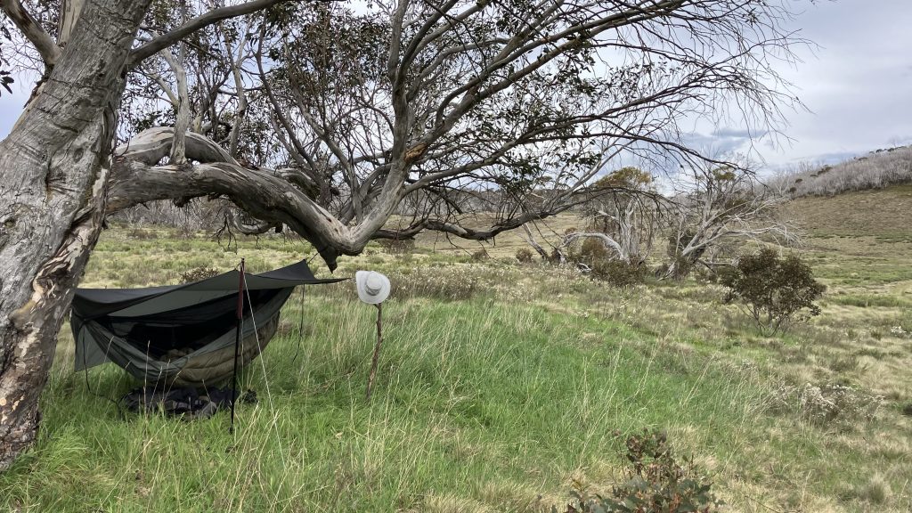 A lovely night at a surprisingly good campsite, especially since the wind died down finally. There was dew overnight and I hadn’t bothered to put the tarp up, so I woke up to a damp outer shell on my quilt, but it soon dried one the sun rose over the rolling plains and meandering creeks.