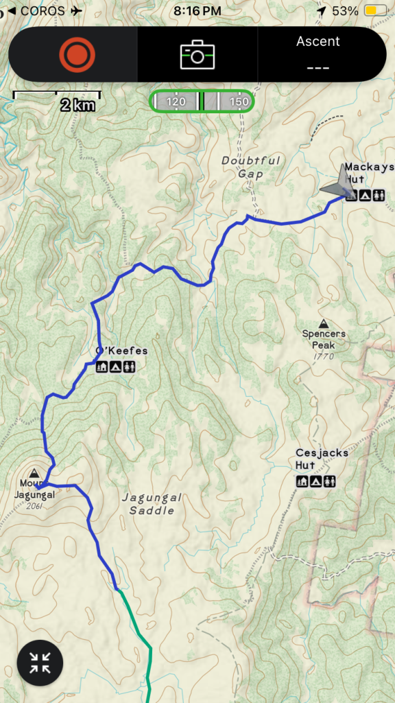 The rain started while we were all sitting in the rustic hut making dinner. Tomorrow we have a shortish day with sections of track and off-track walking and three huts to visit, which hopefully will coincide with any more rain that wants to fall.