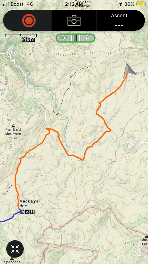 We reached Happys Hut about twenty minutes before the first drops fell. We all scrambled to get our shelters up then set about doing camp chores and mistakenly eating dinner at 4pm because it felt like 7pm. A light hail fell. Updated forecasts seem to say that the heavy thunderstorms of the next two days have largely fizzled out, as so often seems to be the case. Weather modeling relies on historical data, and climate change means there’s little good data for whatever bullshit the climate is doing right now.