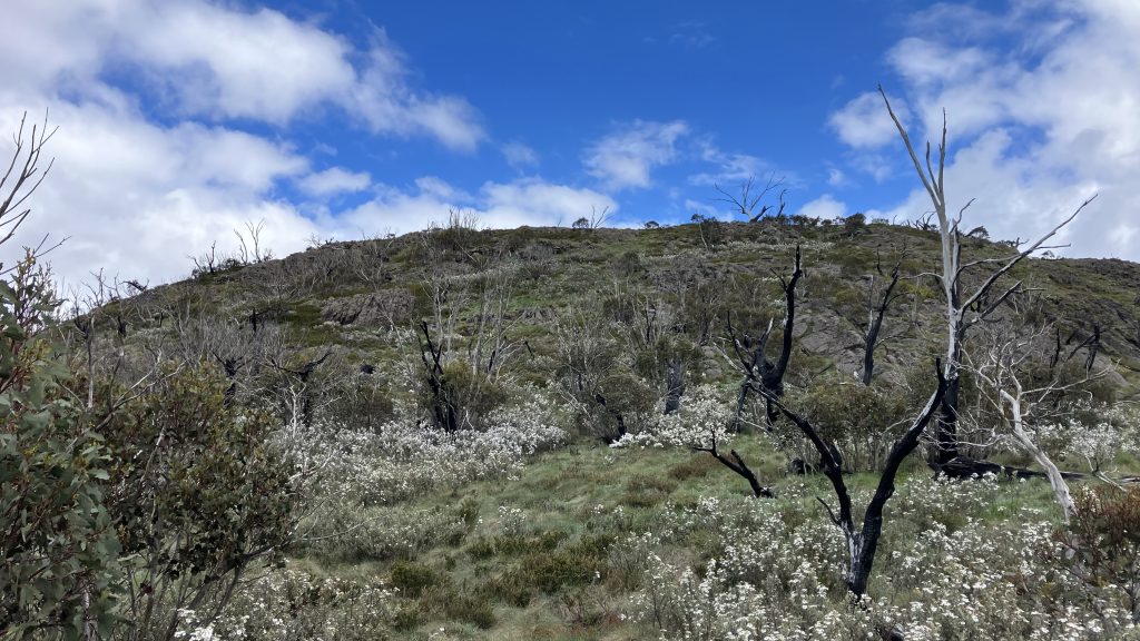We met four hikers heading southbound from Kiandra and exchanged pleasantries through a cloud of flies, then continued on to Four Mile Hut.