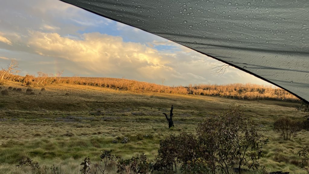 Not long after we got back it started raining, so we all sat and cooked dinner in the hut. At one point it peeled down hail, and we all watched our tents nervously from the door of the hut, but all of them survived. Once the rain finally let up it was time for bed. Bed time out here is 7pm.