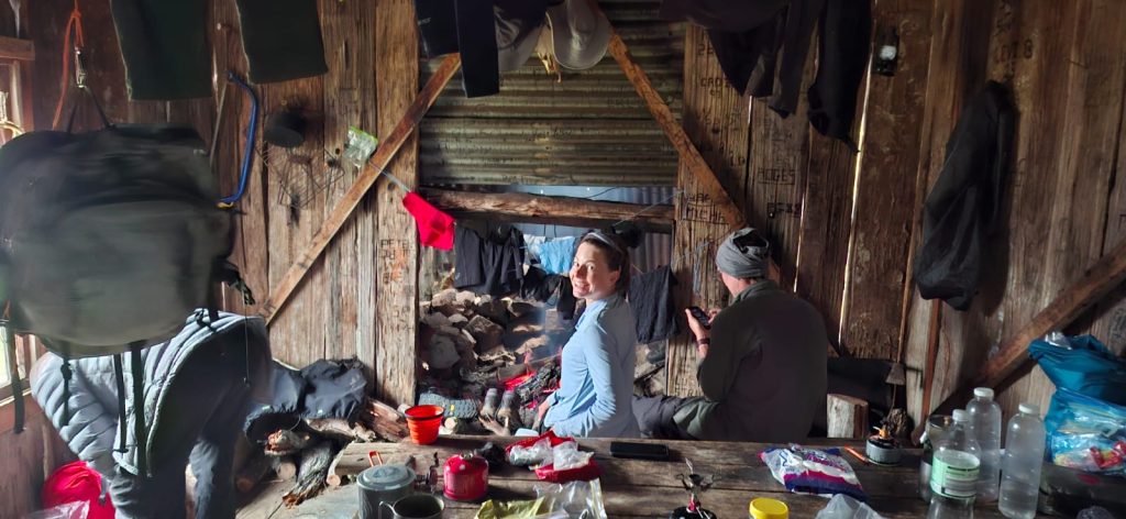 Witzes hut is lovely, with its hundred year old vertical slab walls. We got a good fire going and soon the place was filled with the smell of wet socks hung by the fire and roasting marshmallows. Robyn put on Christmas carols, hoping to engender scorn, but was disappointed when it turned into a sing along.