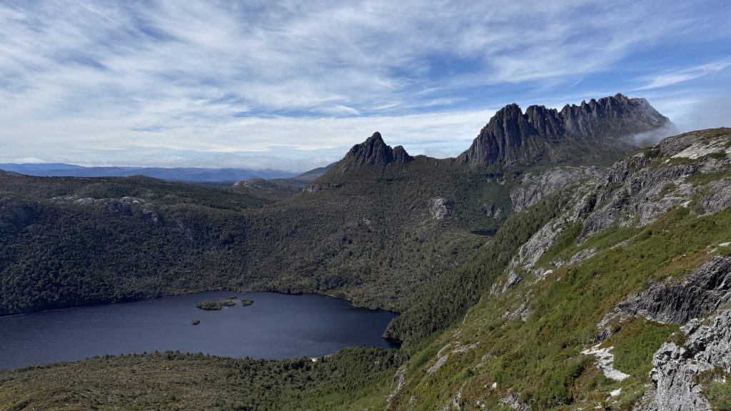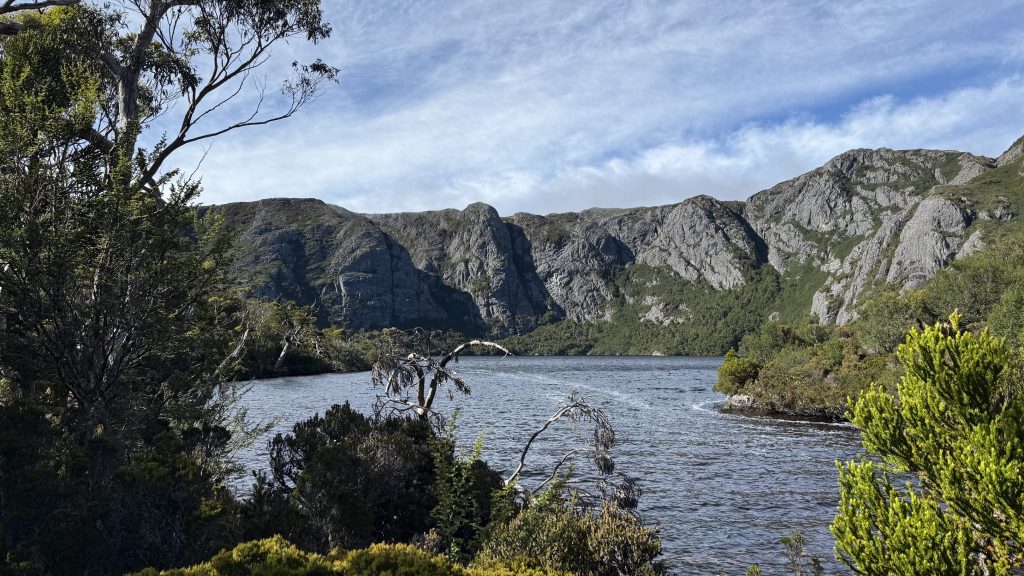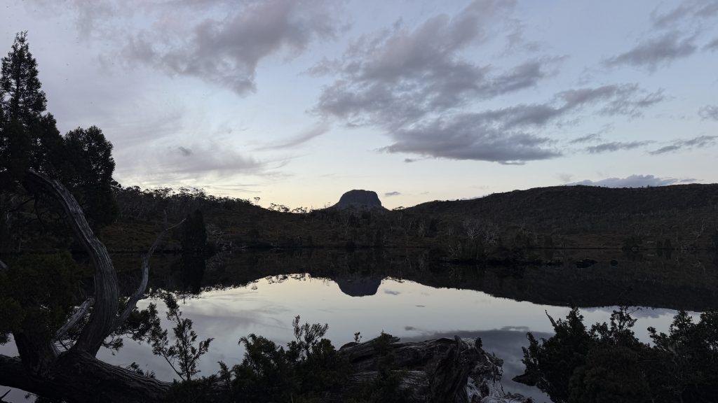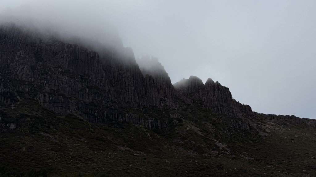 As I walk past the pile of backpacks waiting for the first safety briefing of the day and board the shuttle bus, I watch waves of cloud break against the ragged hull of Cradle Mountain, and have to admit that I’m excited to see what all the fuss is about.