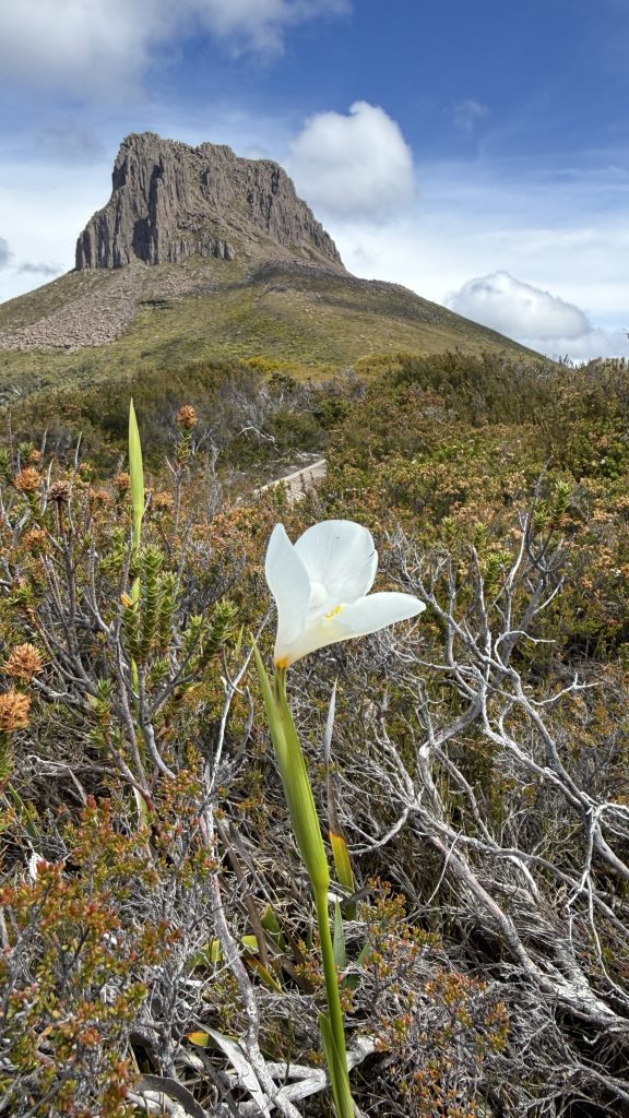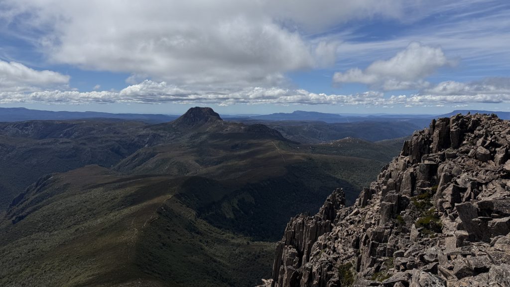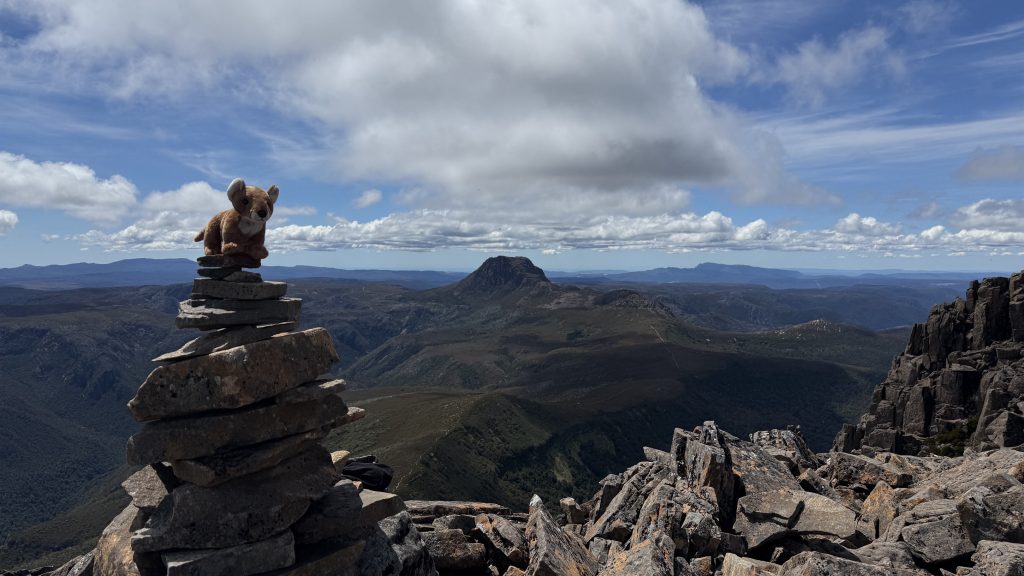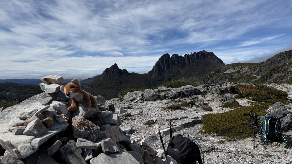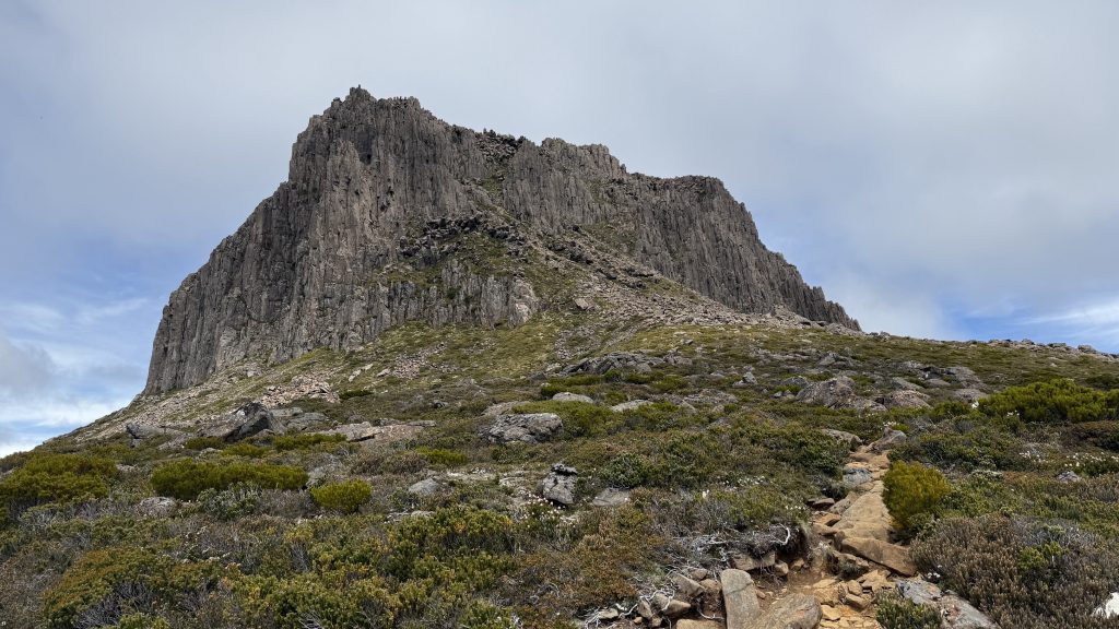 I ask the ranger whether she’d do Cradle or Barn Bluff if she had to choose. Without a moment’s hesitation she says Barn Bluff. Despite the forecast of cloud, it’s starting out as a bluebird day and there are shambling hoards of day walkers making their way to the iconic peak. She says it reminds her of the photos of people waiting to summit Everest. I reaffirm my vow never to wait in line to climb a mountain.