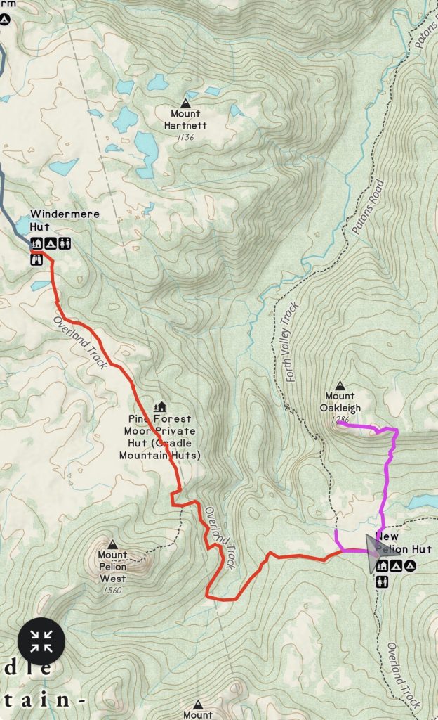 A patch of blue opens in the sky, and I decide to go for a little walk to check out Old Pelion hut. As I’m walking back, I decide to trust my instincts over the forecast, and have a go at Oakleigh. It’s supposed to be a four hour walk. I’m not the only one with this idea.