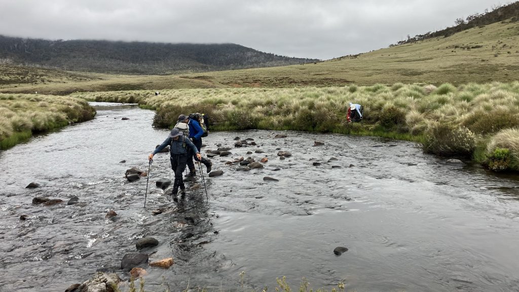 Three of us crossed the Tantangara without getting our feet wet. The other two opted for a shallow wade. I’ve now crossed this stream in three places; the ford, the first set of rapids you come to upstream, and the second set of rapids. I suggest the second set (where we crossed today) since the creek widens here and becomes more shallow.
