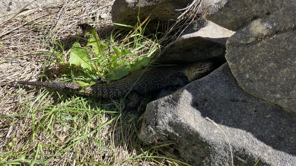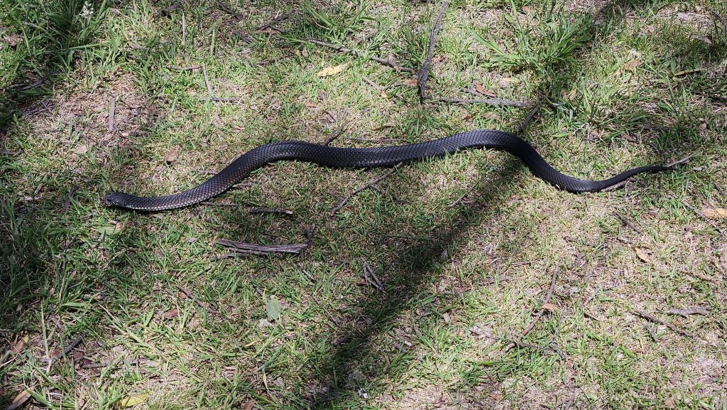 I’d put Inga in charge of the others and sent them on ahead, so we chased them first to Bill Jones’s hut; a dismal dirt-floored hut with one grubby window located in a fantastic camping spot. While waiting there, we helpfully received a warning to watch out for the snake…