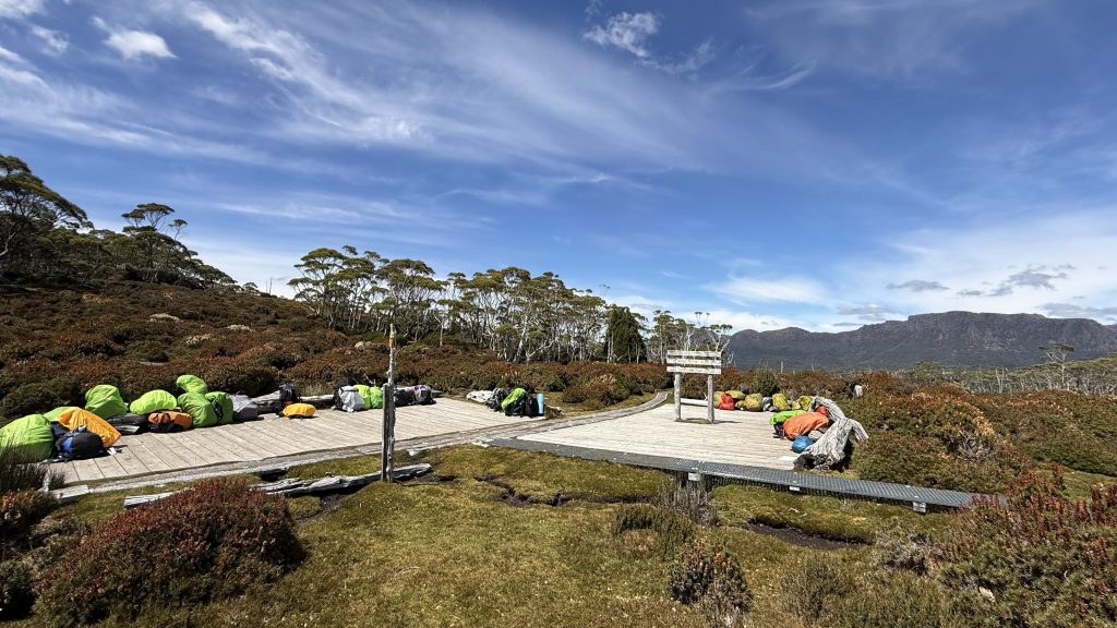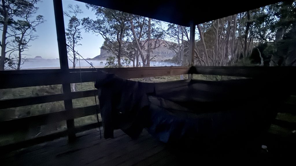 I was keen to get to the hut early-ish to improve my chances of finding an available tent platform, so I’m pleased to find that I have my pick, and one of them has a couple of good trees. It’s not easy being a hammocker in a world of tents, but I’m making it work.