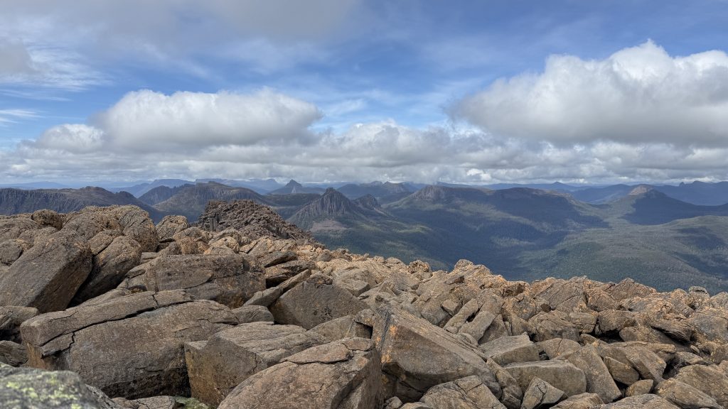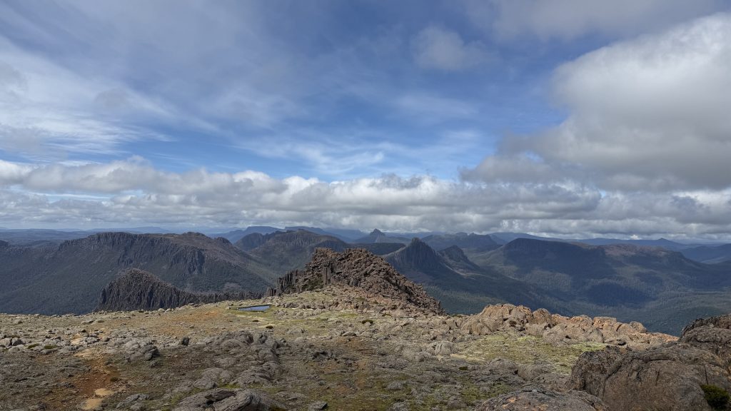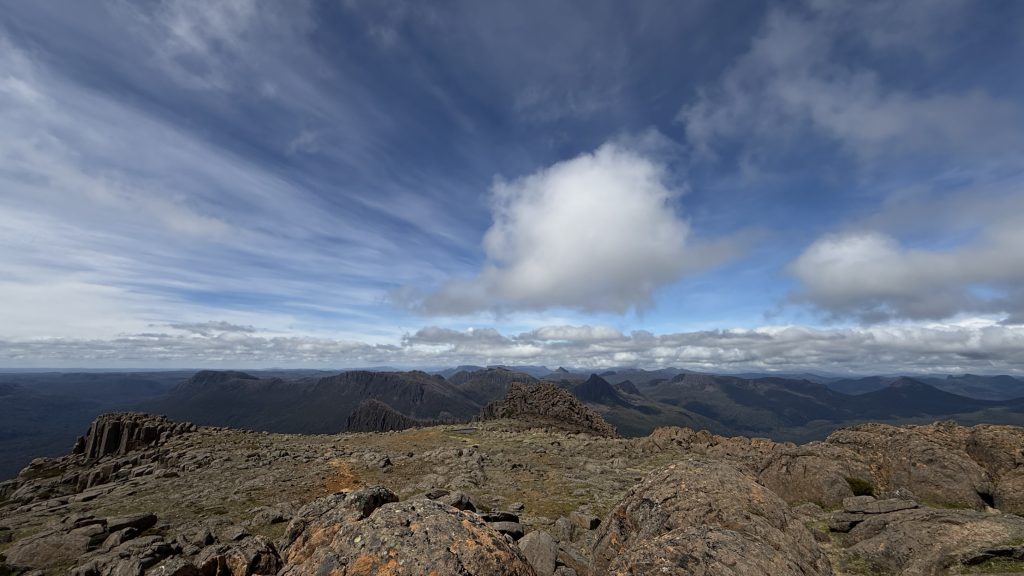 The day has warmed up a lot, and I’m glad I got away early enough to be climbing Ossa in the cool of the morning.