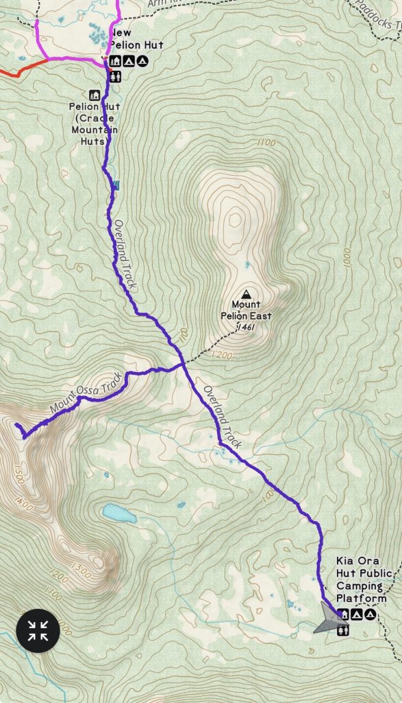 It’s only 4km further to the hut, and all downhill. Mount Massif and the DuCane range loom above me. When planning, I’d been keen to do a traverse of the range, but with only two good days ahead in the forecast, that will have to wait for another time.