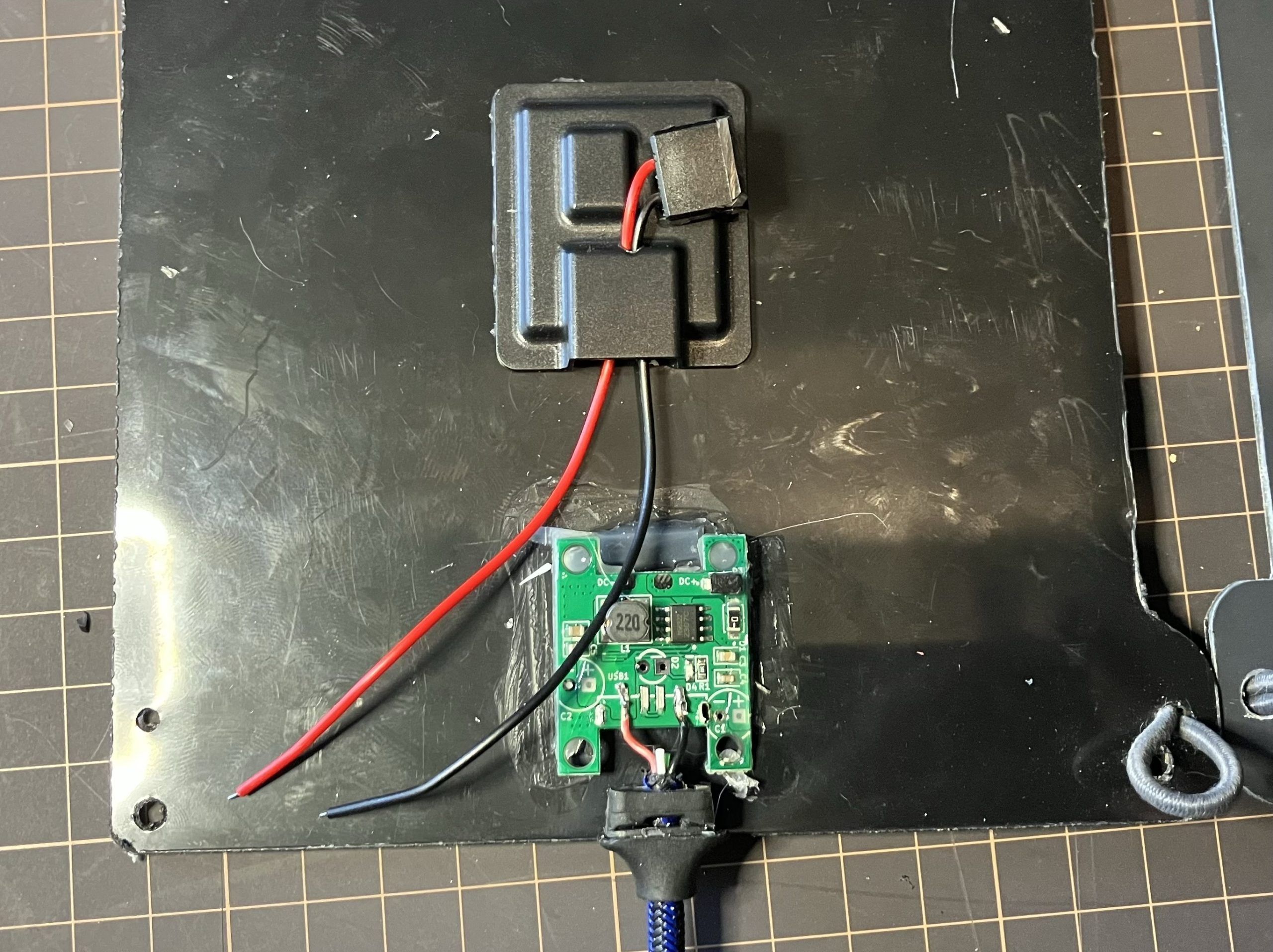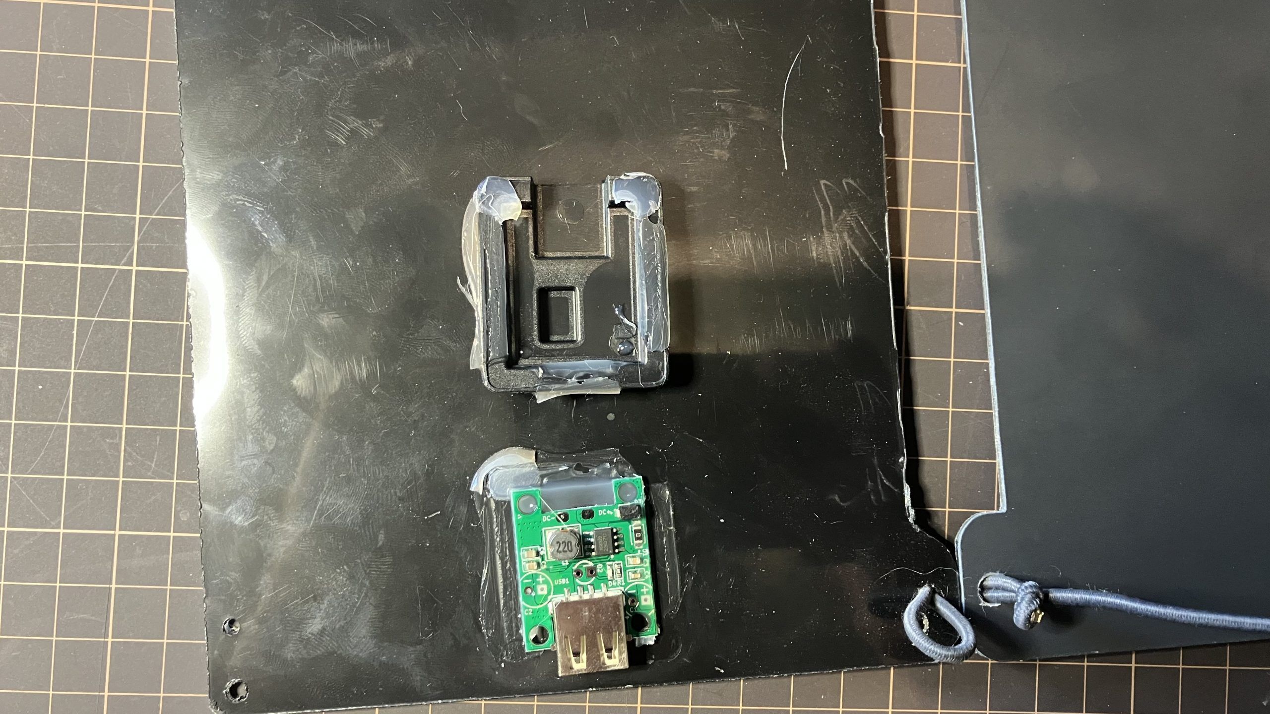 The Lixada panel has two downfalls; the USB-A port requires a separate cable, which can be jostled out while hiking, and is open to the elements, and it’s held on with hot glue that can soften and separate in strong sunlight on a hot day. I replaced mine with a USB C pigtail and sealed it with two part epoxy.