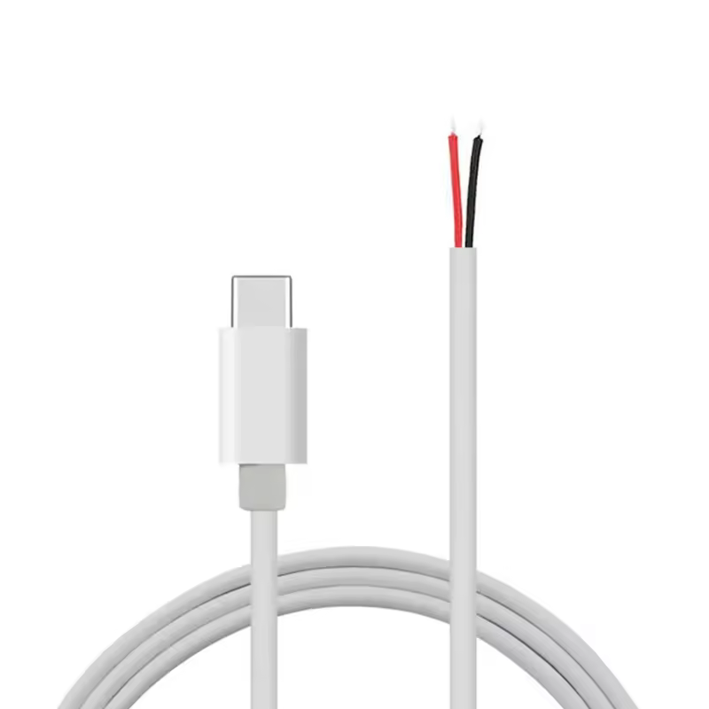 I removed the plug from my cable and exposed the wires. You want as short a cable as practical, with thick wires, to reduce efficiency loss from voltage drop trying to send power through skinny wires or over longer distances than necessary. Mine is a 30cm USB A to USB C cable sold as “fast charging” which should equate to thicker wires. You can buy two wire pigtail USB C cables from sites like Aliexpress for pennies.
